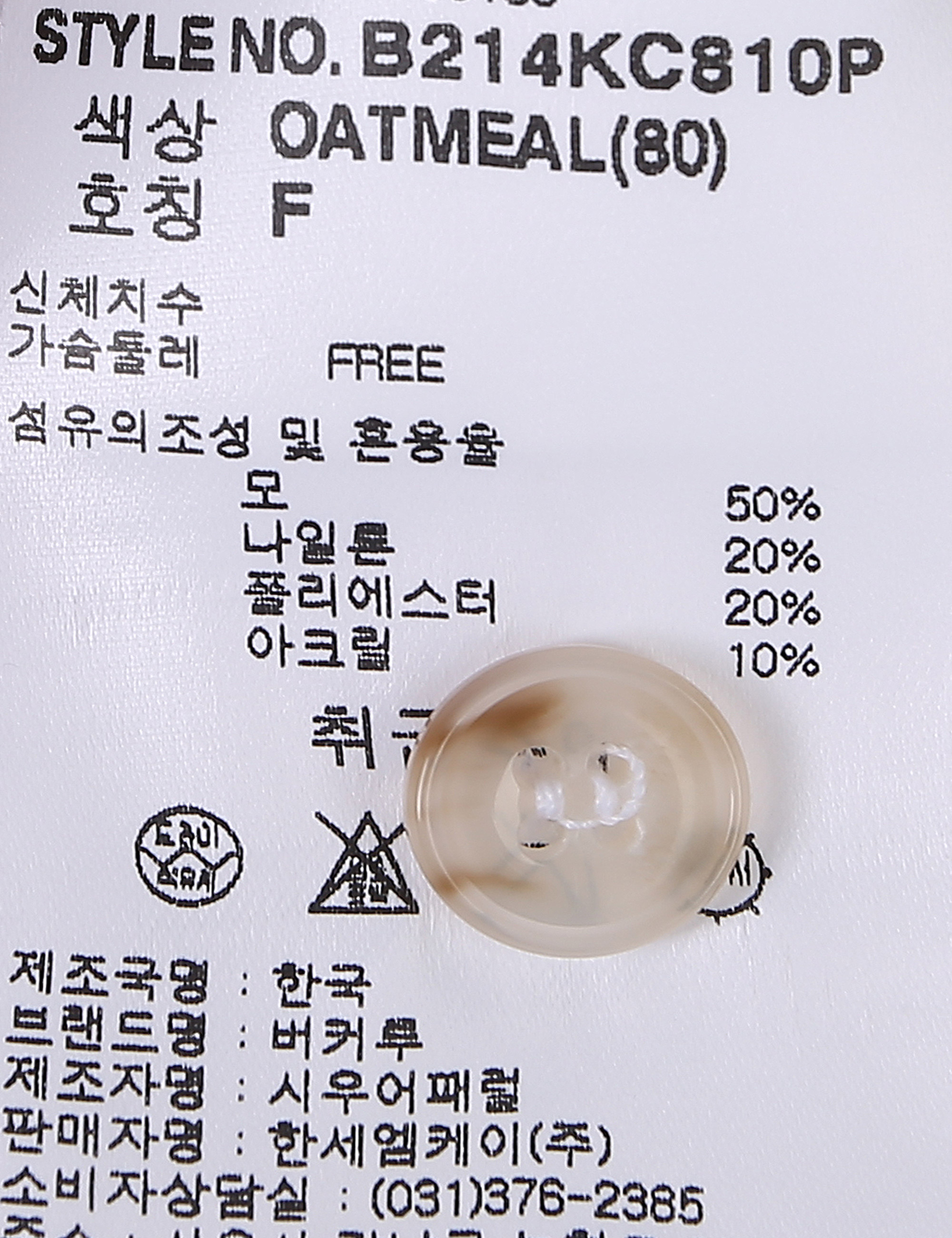 상품명 여성 모혼방 골지버튼 가디건(B214KC810P)