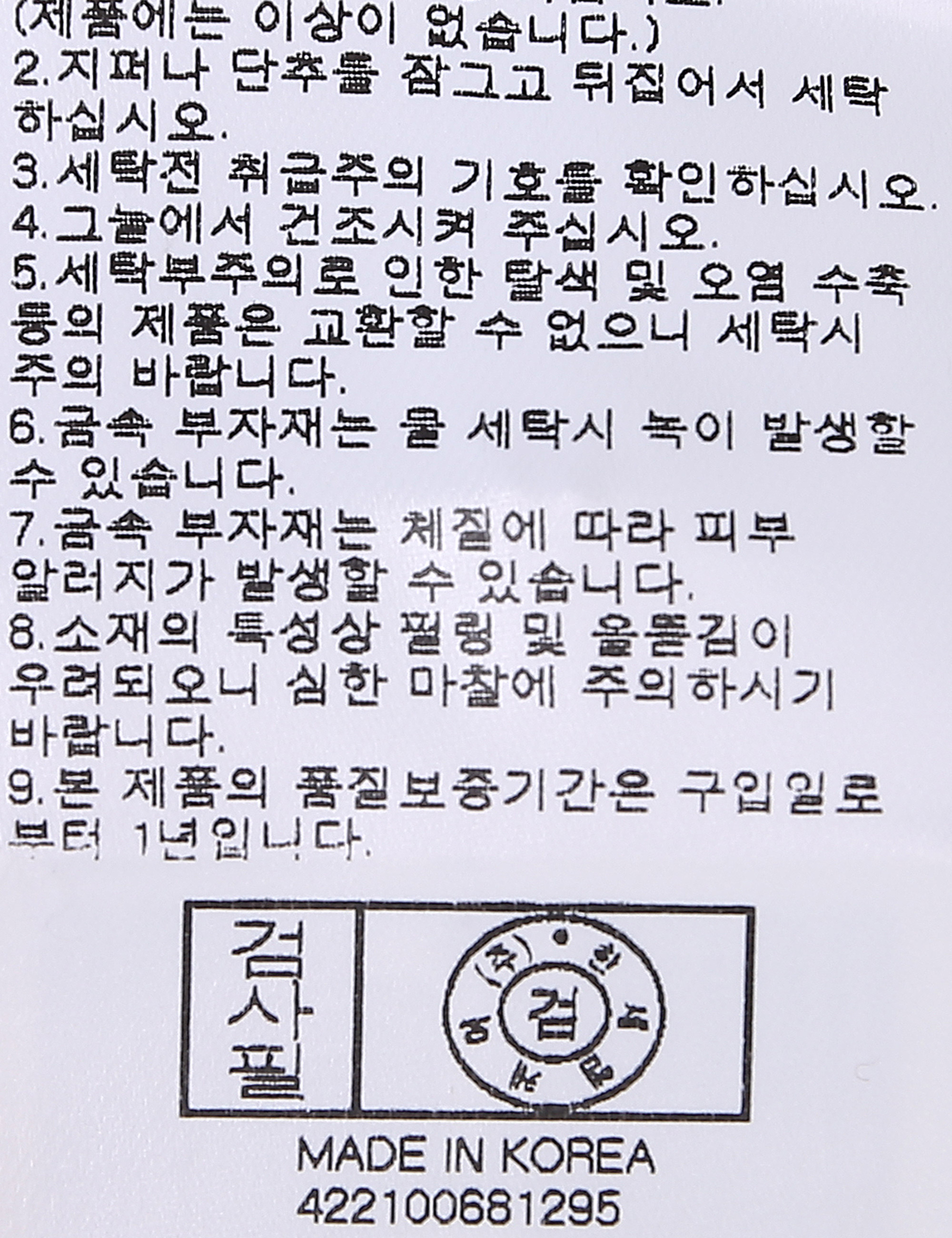 세탁방법 및 취급시 주의사항 본 제품은 반드시 드라이크리닝 하십시오.(세탁라벨참고)