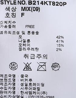 브랜드 홈 바로가기| 제품소재 | [겉감]모42% 나일론41% 모헤어15% 폴리우레탄2% |