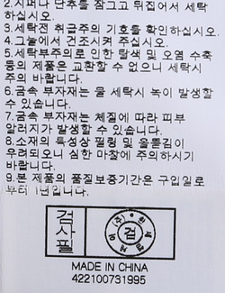 | 세탁방법 및 취급시 주의사항 | 본 제품은 반드시 드라이크리닝 하십시오.(세탁라벨참고) |
