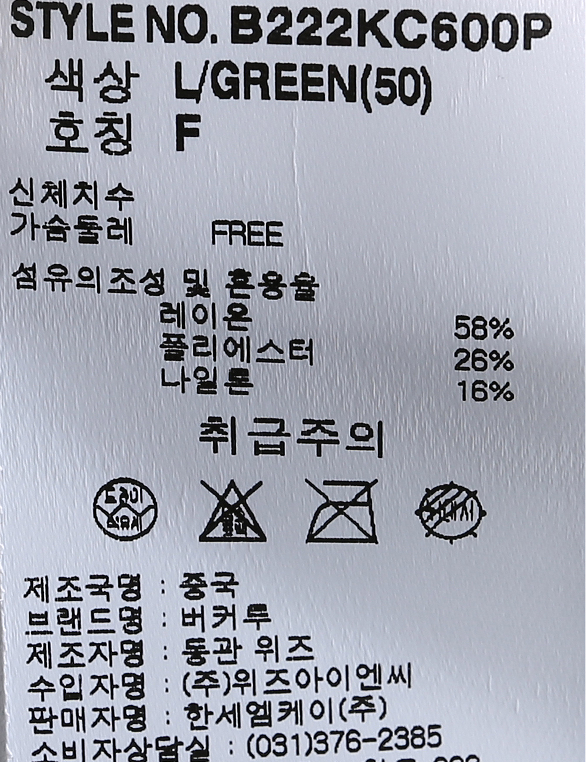 제품소재 [겉감]레이온58% 폴리에스터26% 나일론16%