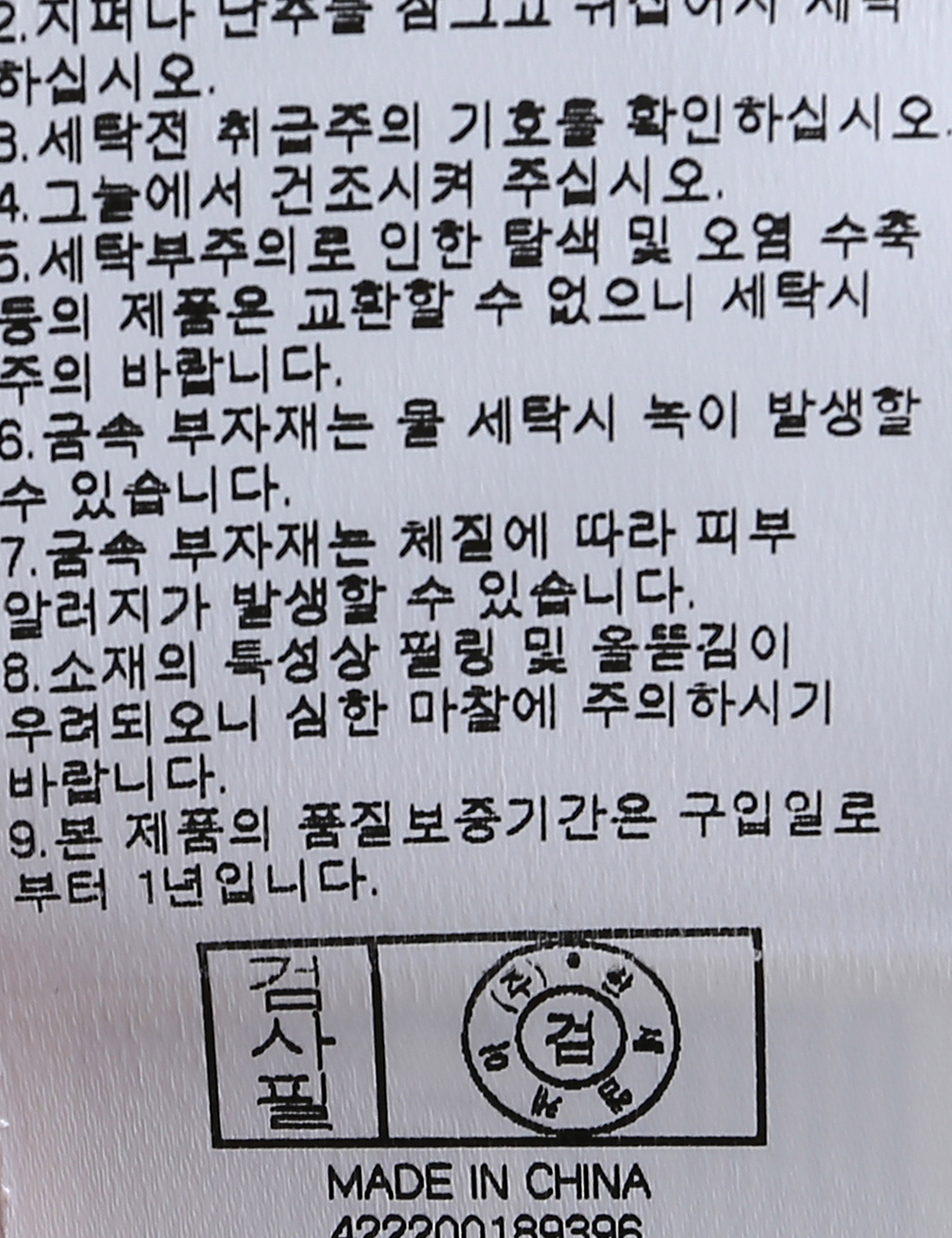 세탁방법 및 취급시 주의사항 본 제품은 반드시 드라이크리닝 하십시오.(세탁라벨참고)