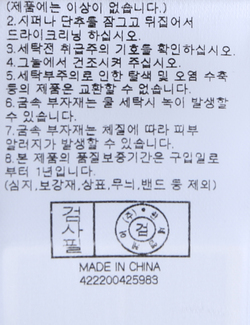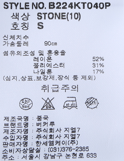 | 세탁방법 및 취급시 주의사항 | 본 제품은 반드시 드라이크리닝 하십시오.(세탁라벨참고) |