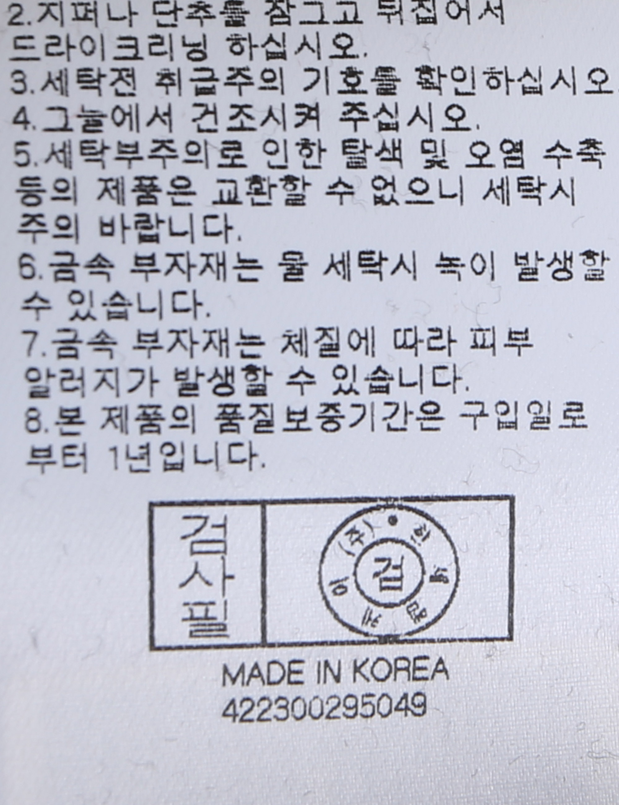 | 세탁방법 및 취급시 주의사항 | 본 제품은 반드시 드라이크리닝 하십시오.(세탁라벨참고) |