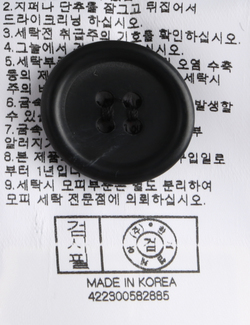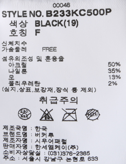 | 세탁방법 및 취급시 주의사항 | 본 제품은 반드시 드라이크리닝 하십시오.(세탁라벨참고) |