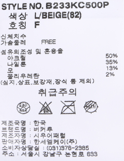 상품명 여성 알파카 혼방 가디건(B233KC500P)