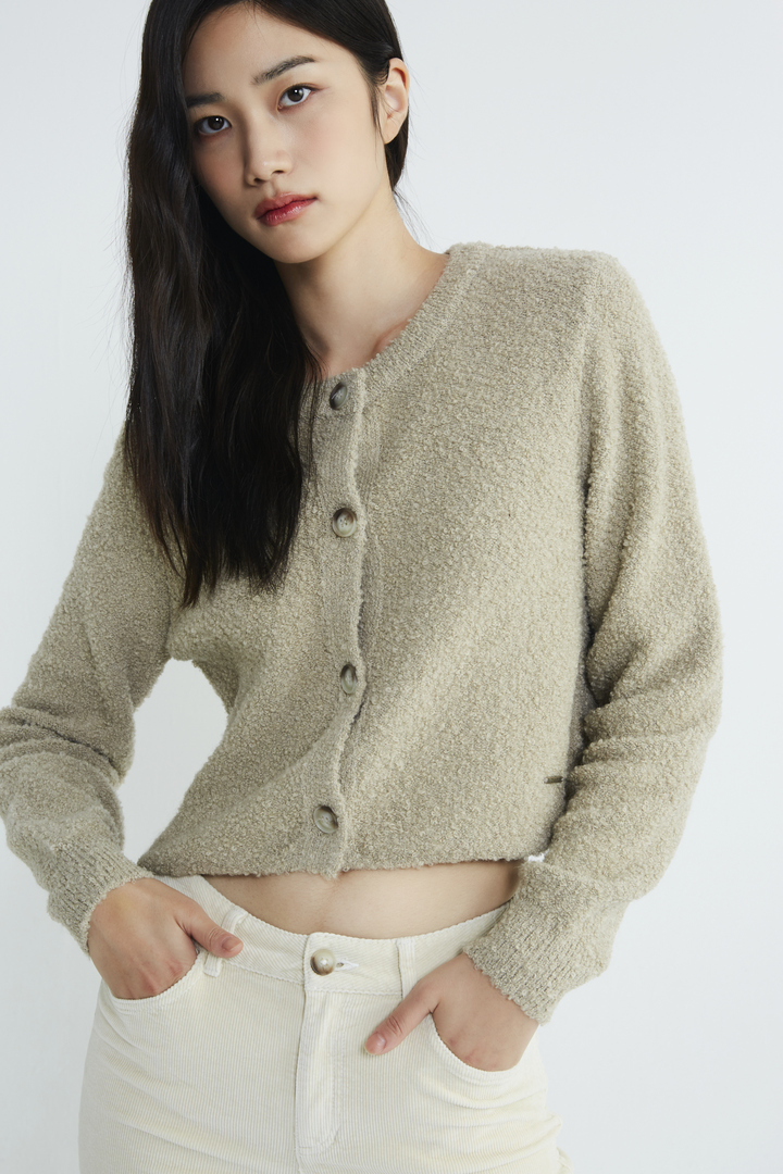 * 알파카 혼방원사를 사용한 크롭 니트 가디건