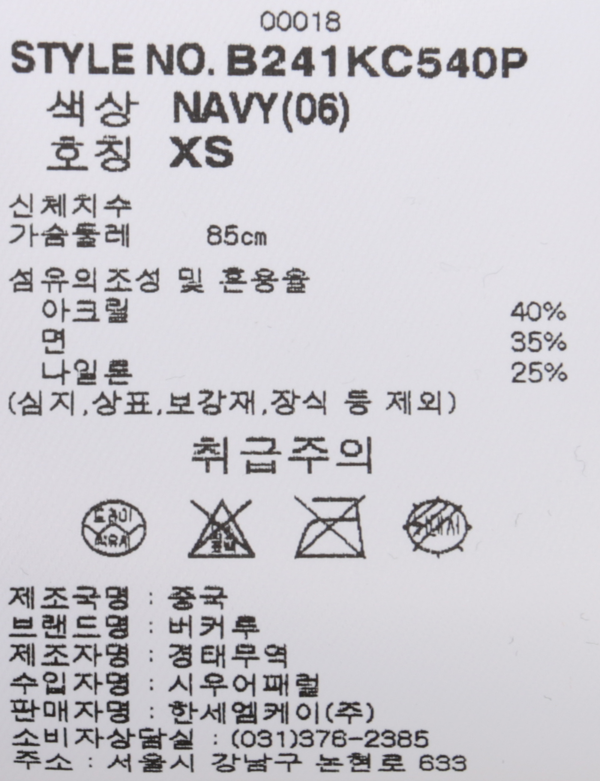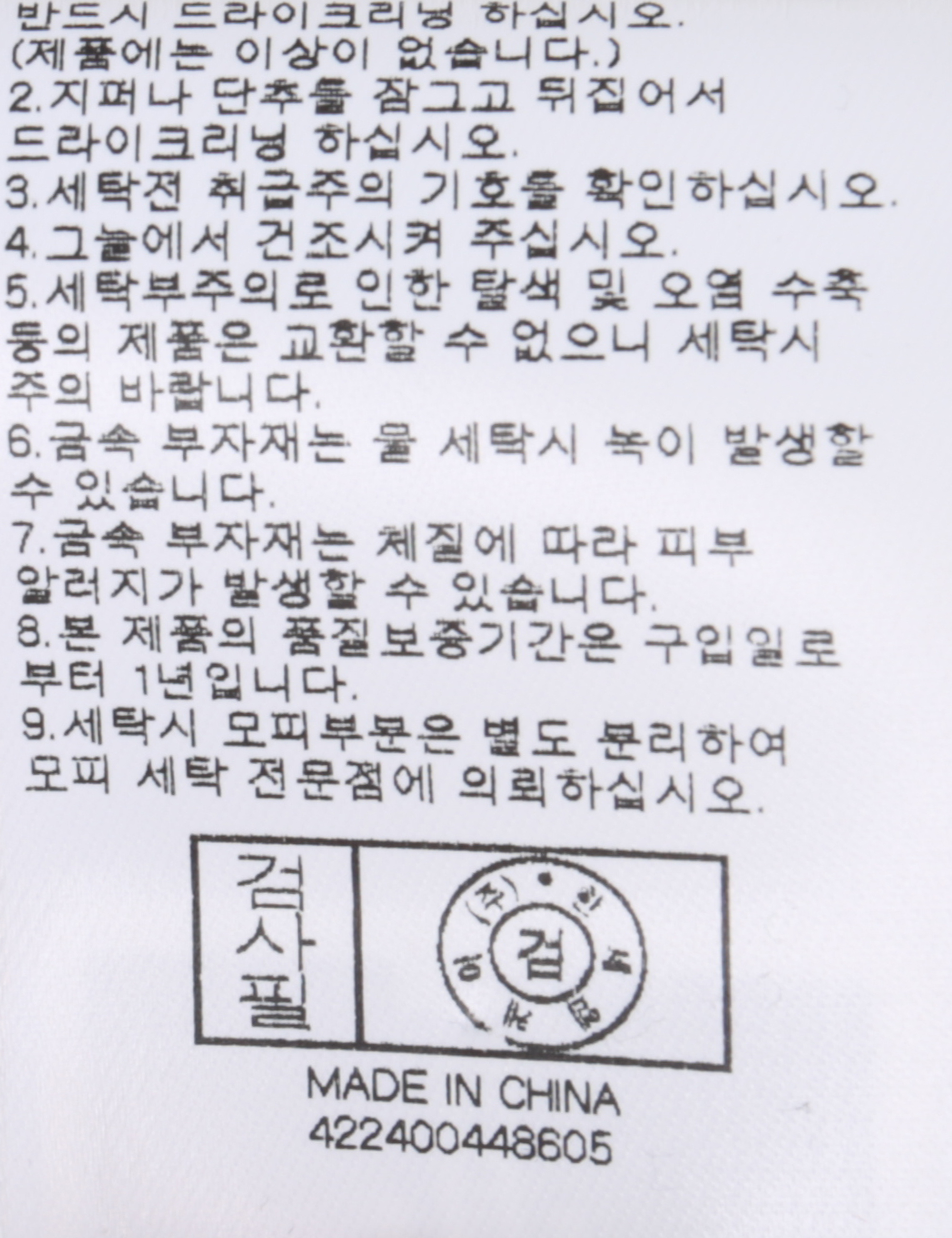 | 세탁방법 및 취급시 주의사항 | 본 제품은 반드시 드라이크리닝 하십시오.(세탁라벨참고) |