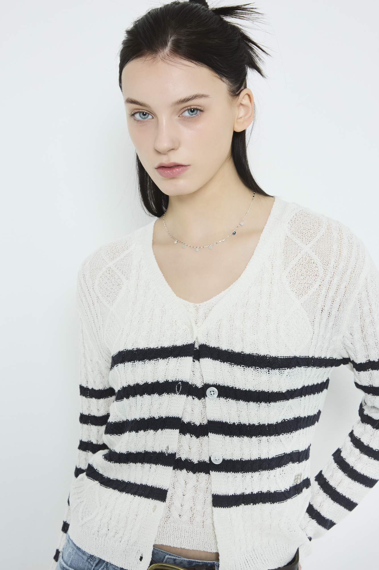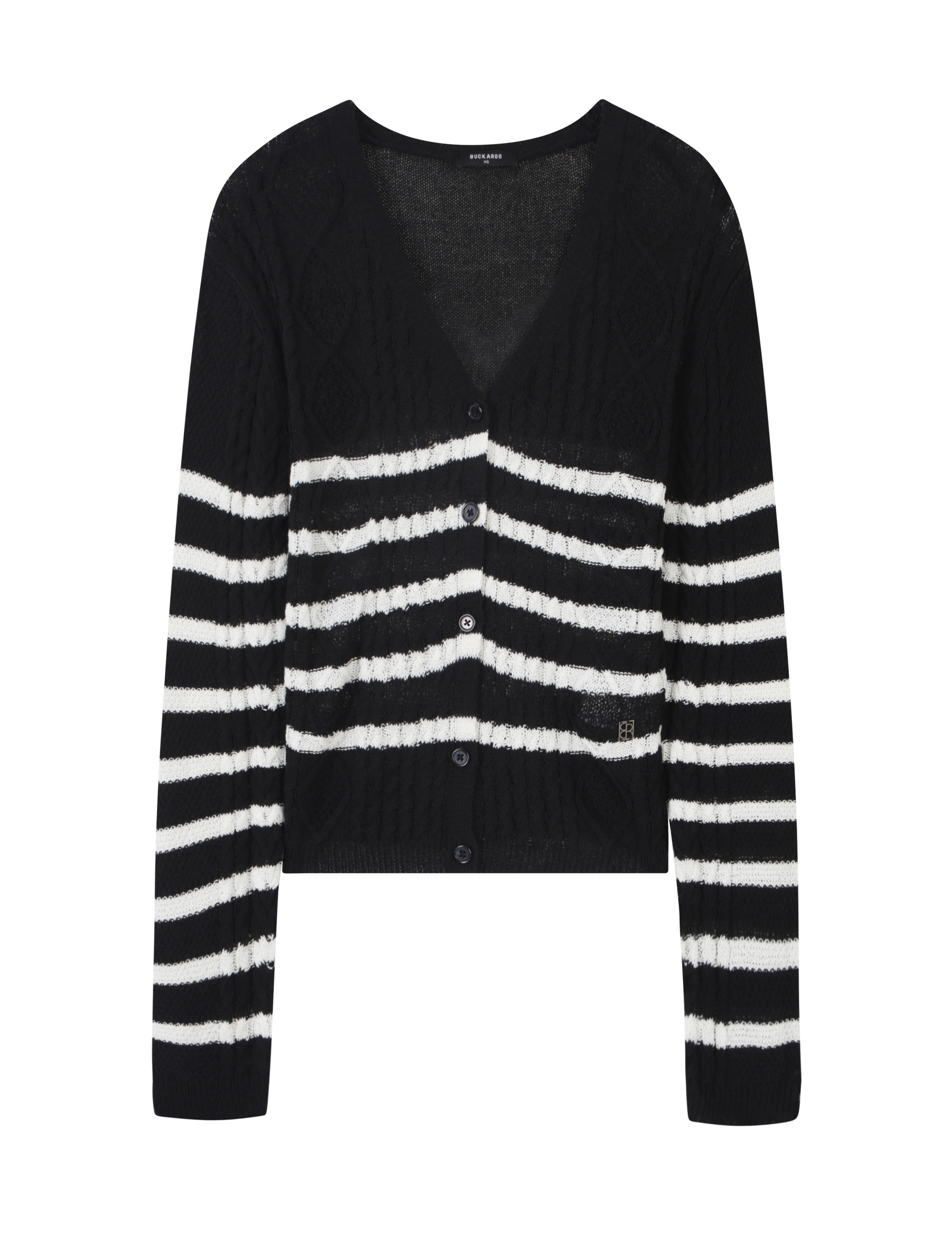 *스트라이프 꽈배기 조직 V넥 가디건