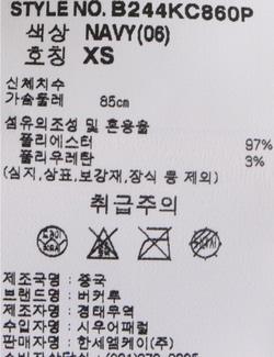 세탁방법 및 취급시 주의사항 본 제품은 반드시 드라이크리닝 하십시오.(세탁라벨참고)