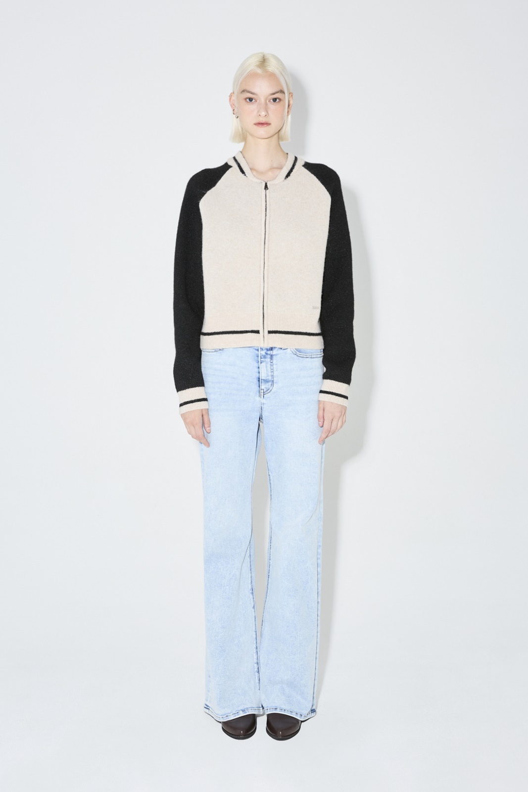 B244KC860P 여성 바시티 집업 니트 가디건(B244KC860P)