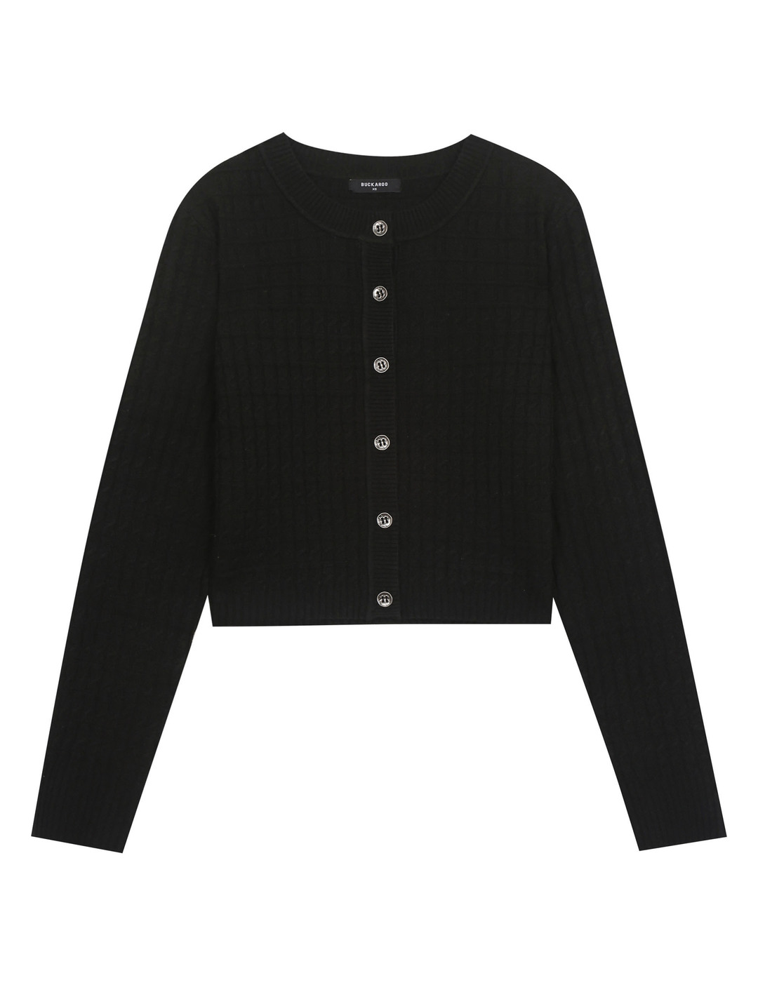 * 가볍고 부드러운 터치감의 소재를 사용하여 고급스러운 분위기를 자아내는 케이블 니트가디건