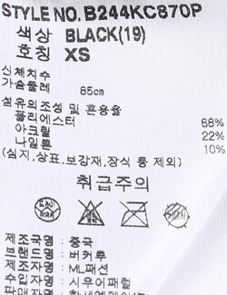 | 세탁방법 및 취급시 주의사항 | 본 제품은 반드시 드라이크리닝 하십시오.(세탁라벨참고) |