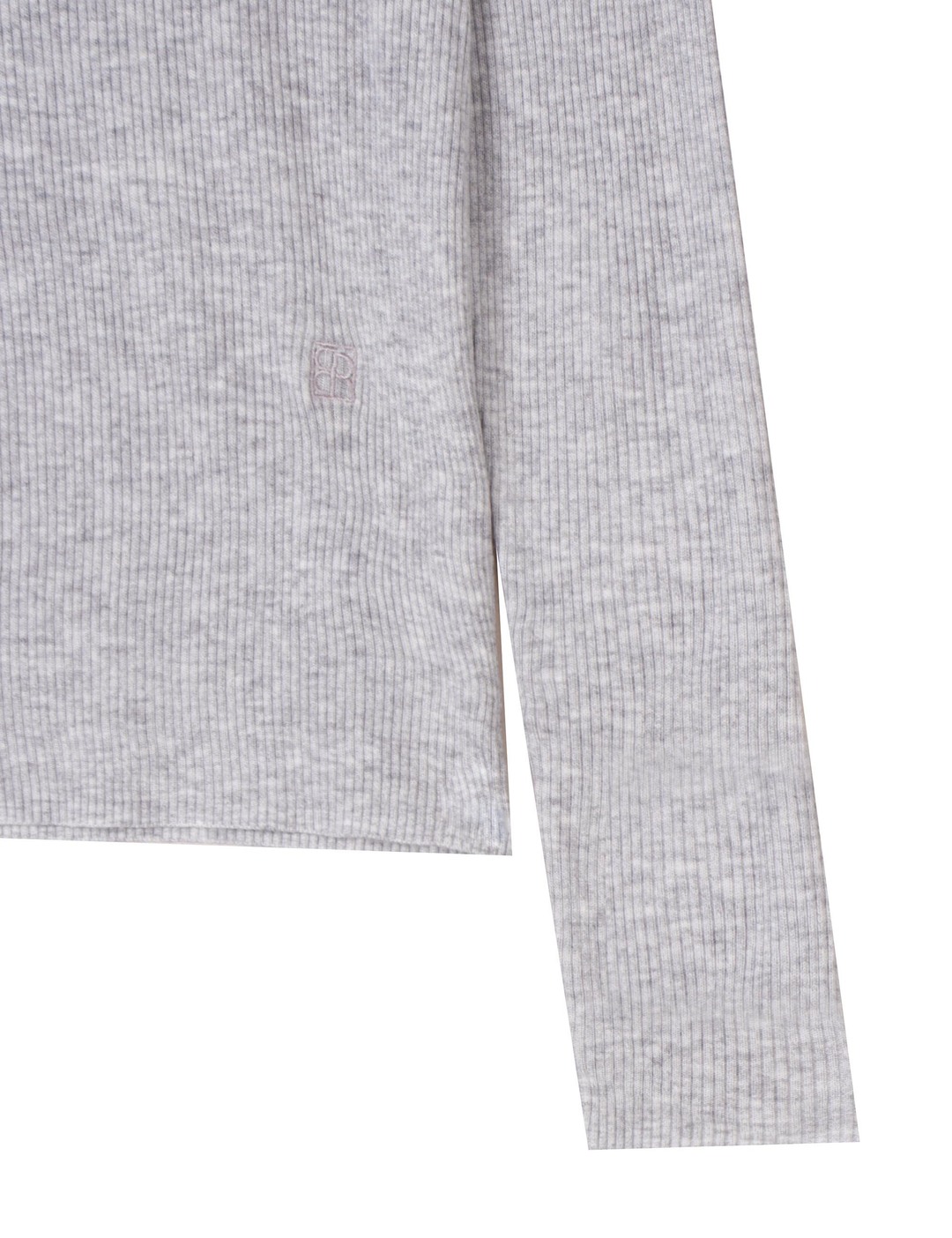 *왼쪽 밑단에 로고 자수가 특징인 롱 슬리브 니트 탑.