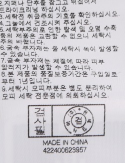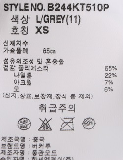 | 세탁방법 및 취급시 주의사항 | 본 제품은 반드시 드라이크리닝 하십시오.(세탁라벨참고) |