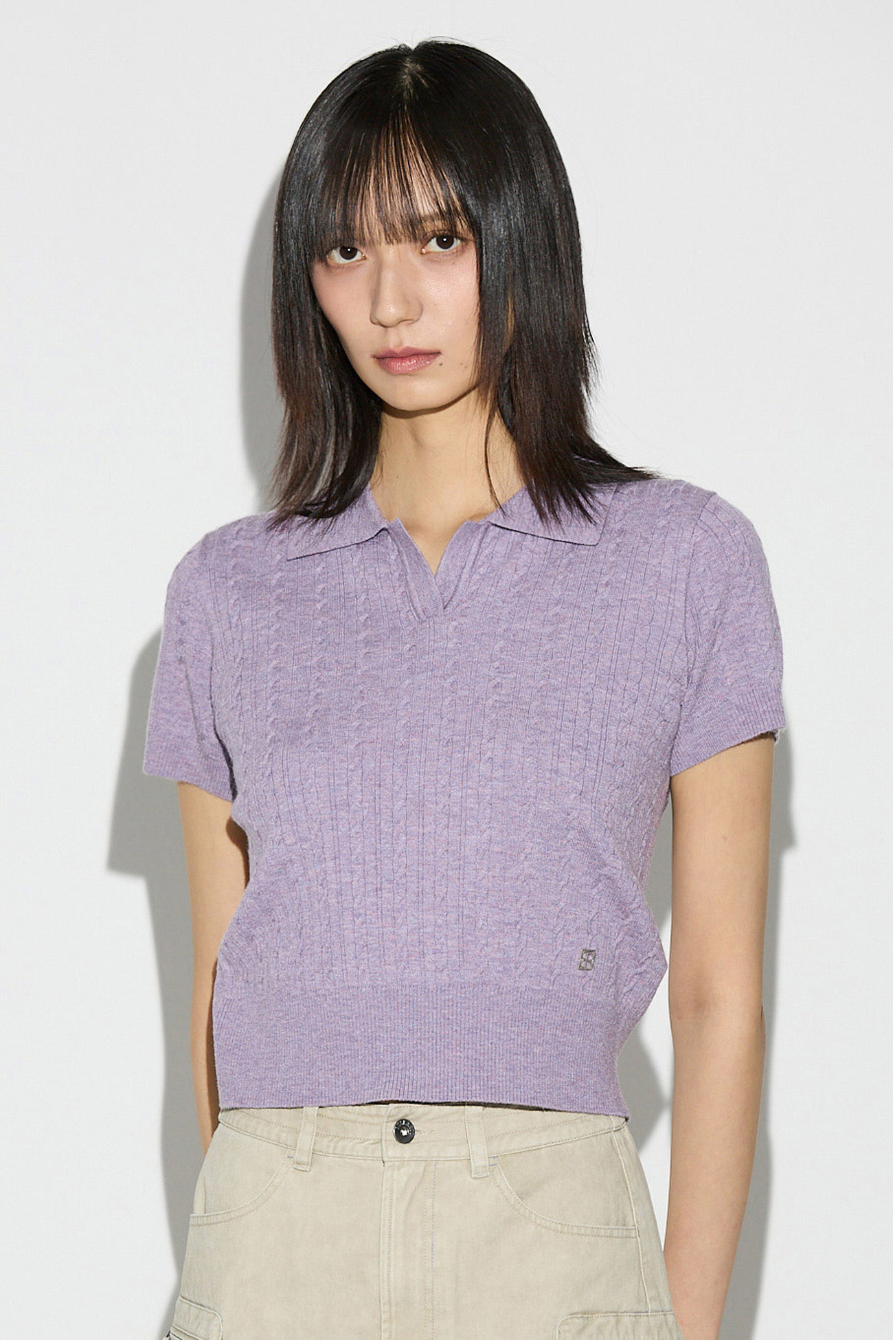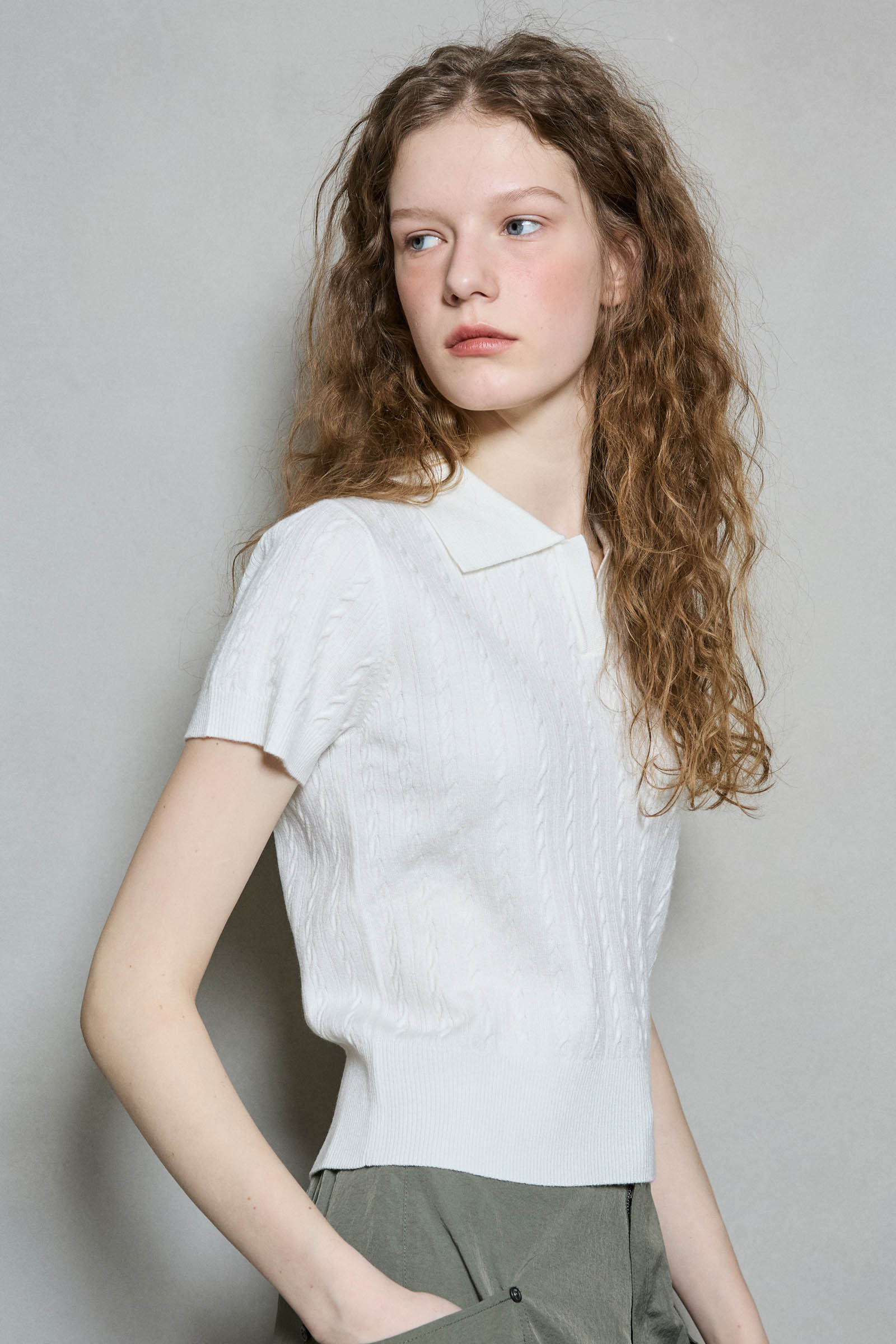 * 가볍고 부드러운 촉감의 소재를 사용해 고급스러운 퀄리티를 전해주는 카라 케이블 니트