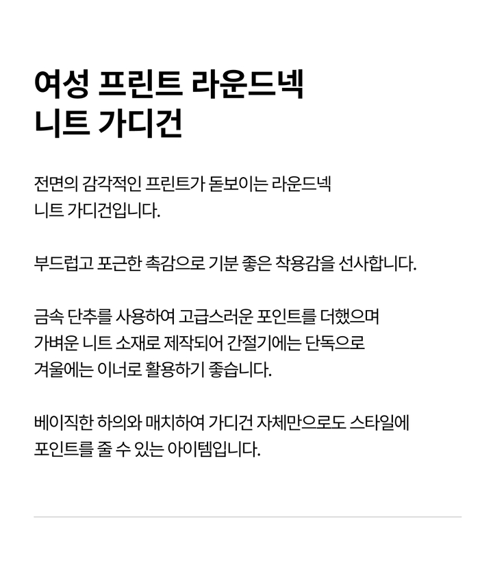 | 상품명 | 여성 프린트 라운드넥 니트 가디건(B254KC840P) |