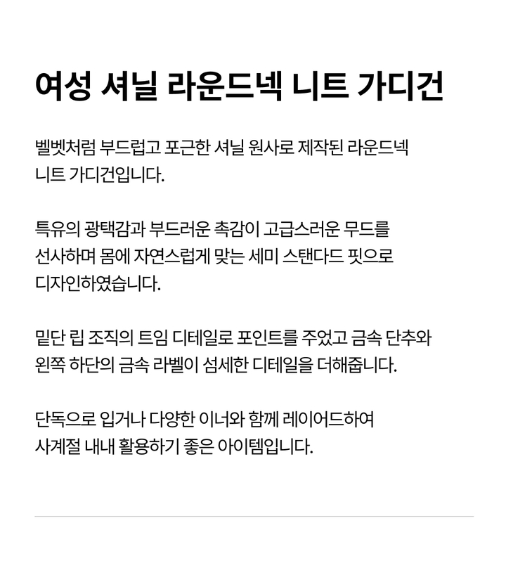 | 상품명 | 여성 셔닐 라운드넥 니트 가디건(B254KC850P) |