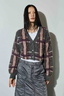 * 패턴이 돋보이는 니트 가디건으로, 여유 있는 루즈핏과 크롭 기장으로