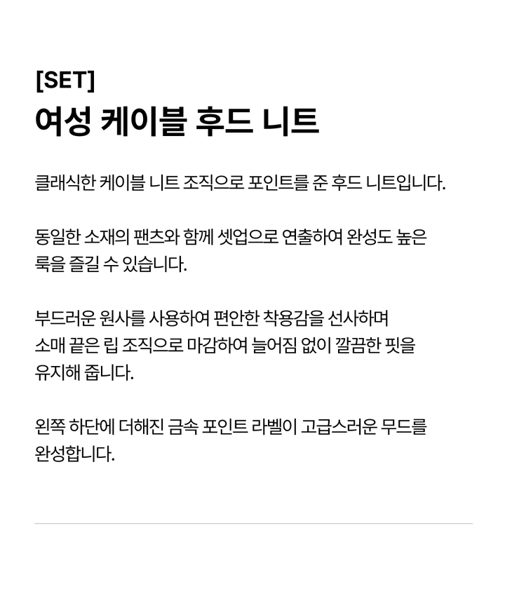 | 상품명 | [SET] 여성 케이블 후드 니트(B254KT920P) |