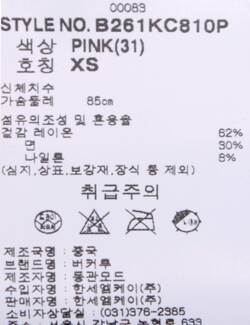 제품소재 [겉감]레이온62% 면30% 나일론8%