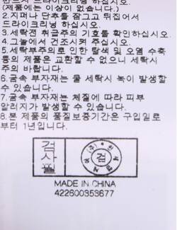 세탁방법 및 취급시 주의사항 본 제품은 반드시 드라이크리닝 하십시오.(세탁라벨참고)