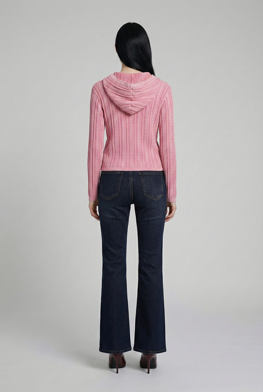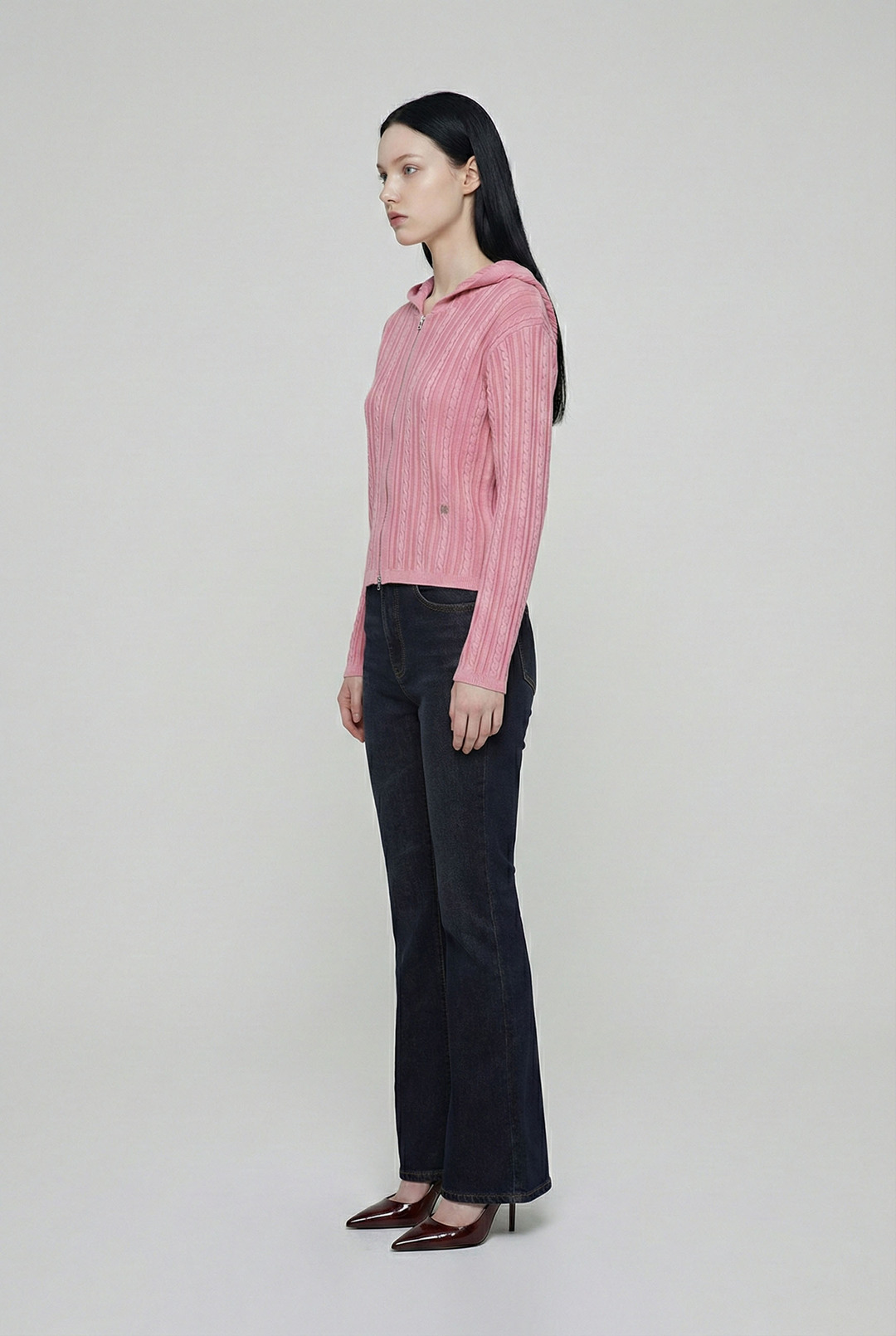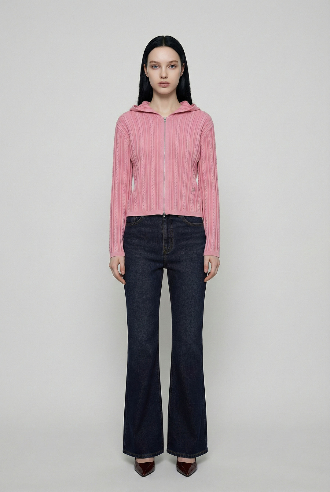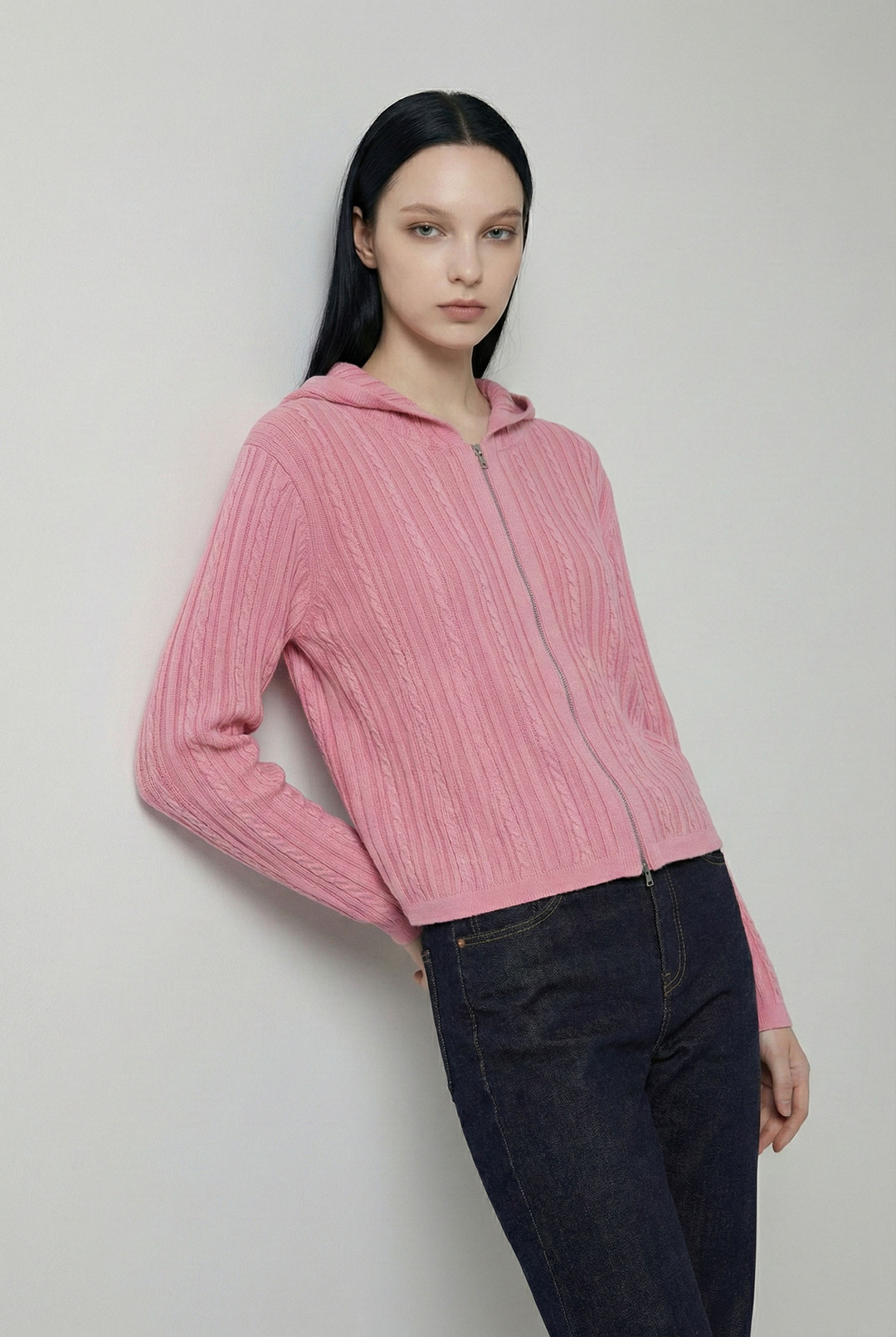 B261KC810P 여성 케이블 다잉 니트 후드 집업(B261KC810P)