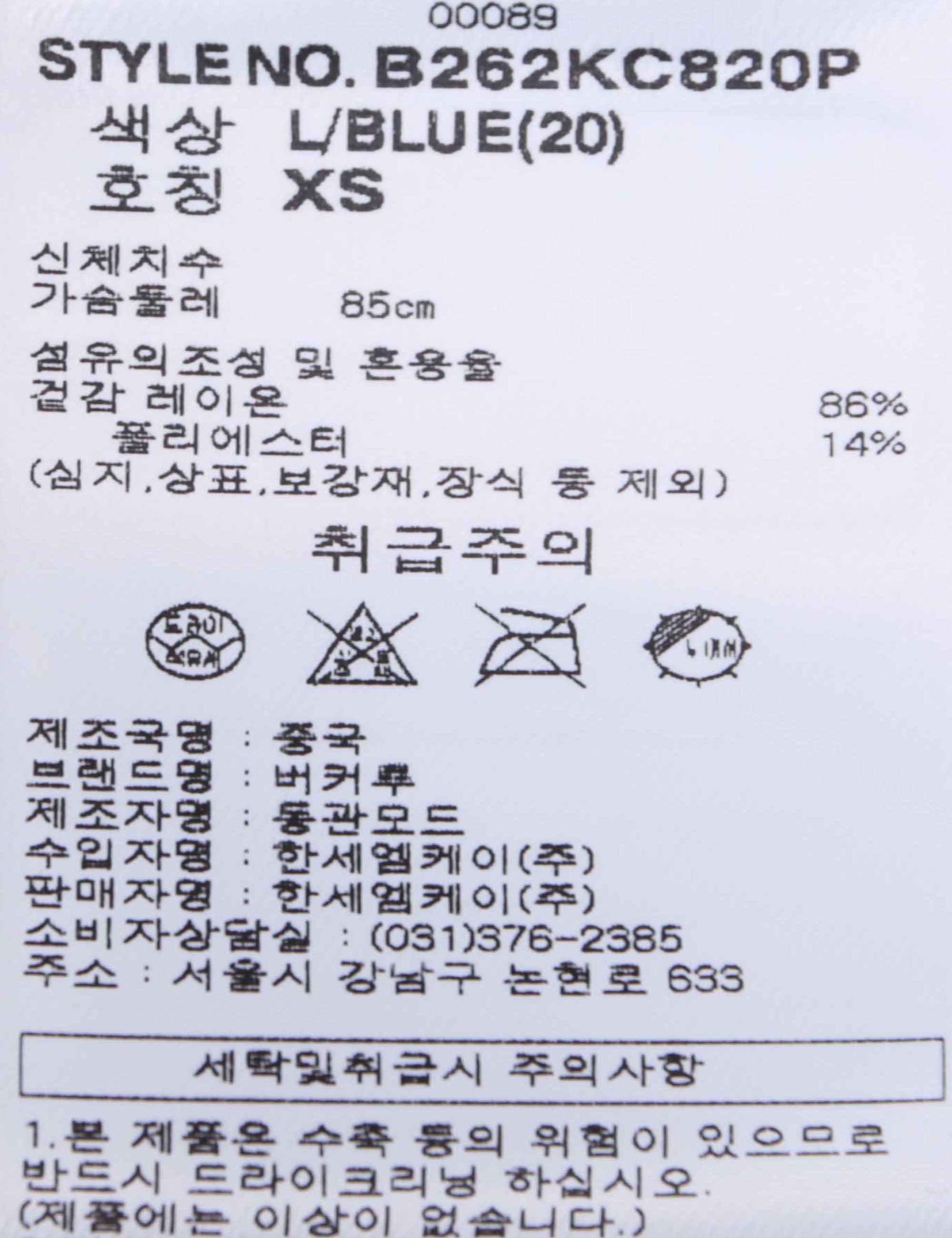 | 세탁방법 및 취급시 주의사항 | 본 제품은 반드시 드라이크리닝 하십시오.(세탁라벨참고) |