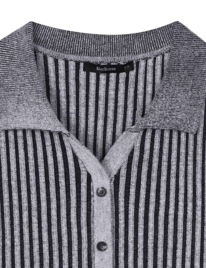 여성 투톤 오픈 카라 니트 가디건 (B262KC860P)