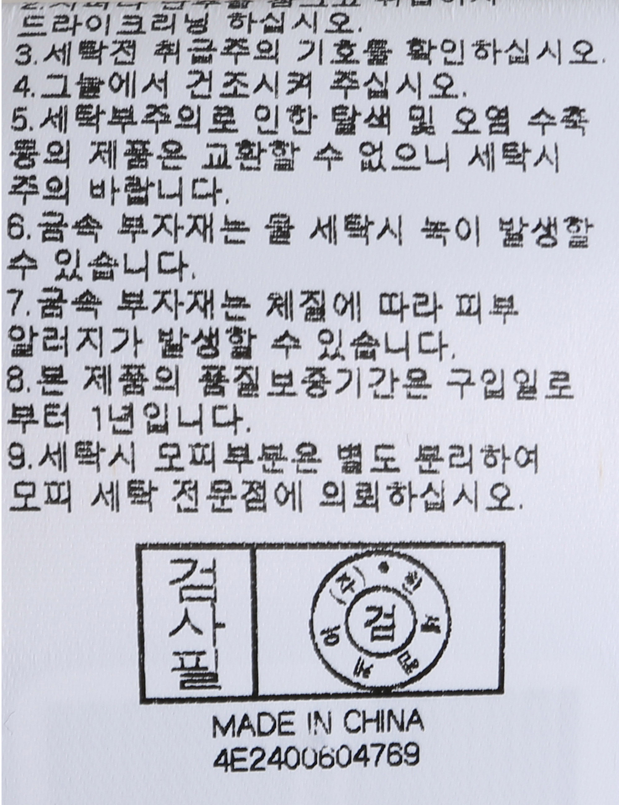 | 세탁방법 및 취급시 주의사항 | 본 제품은 반드시 드라이크리닝 하십시오.(세탁라벨참고) |