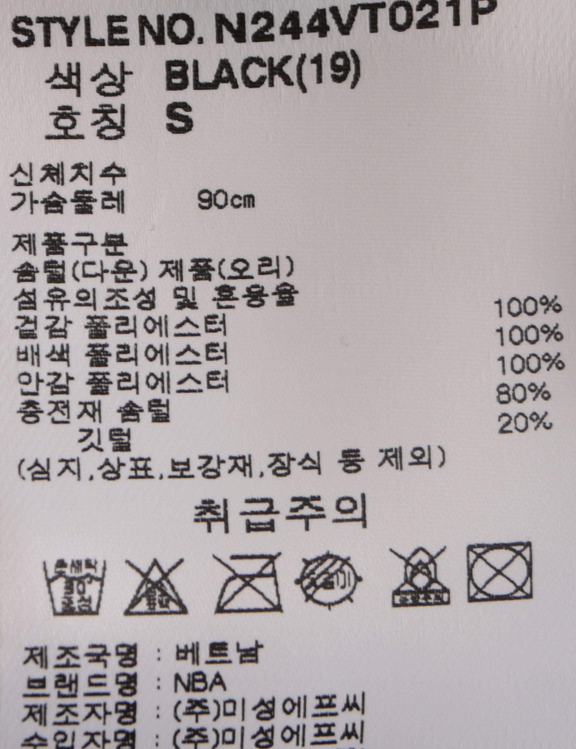 | 상품명 | NBA 자수 퀼팅 다운 베스트(N244VT021P) |