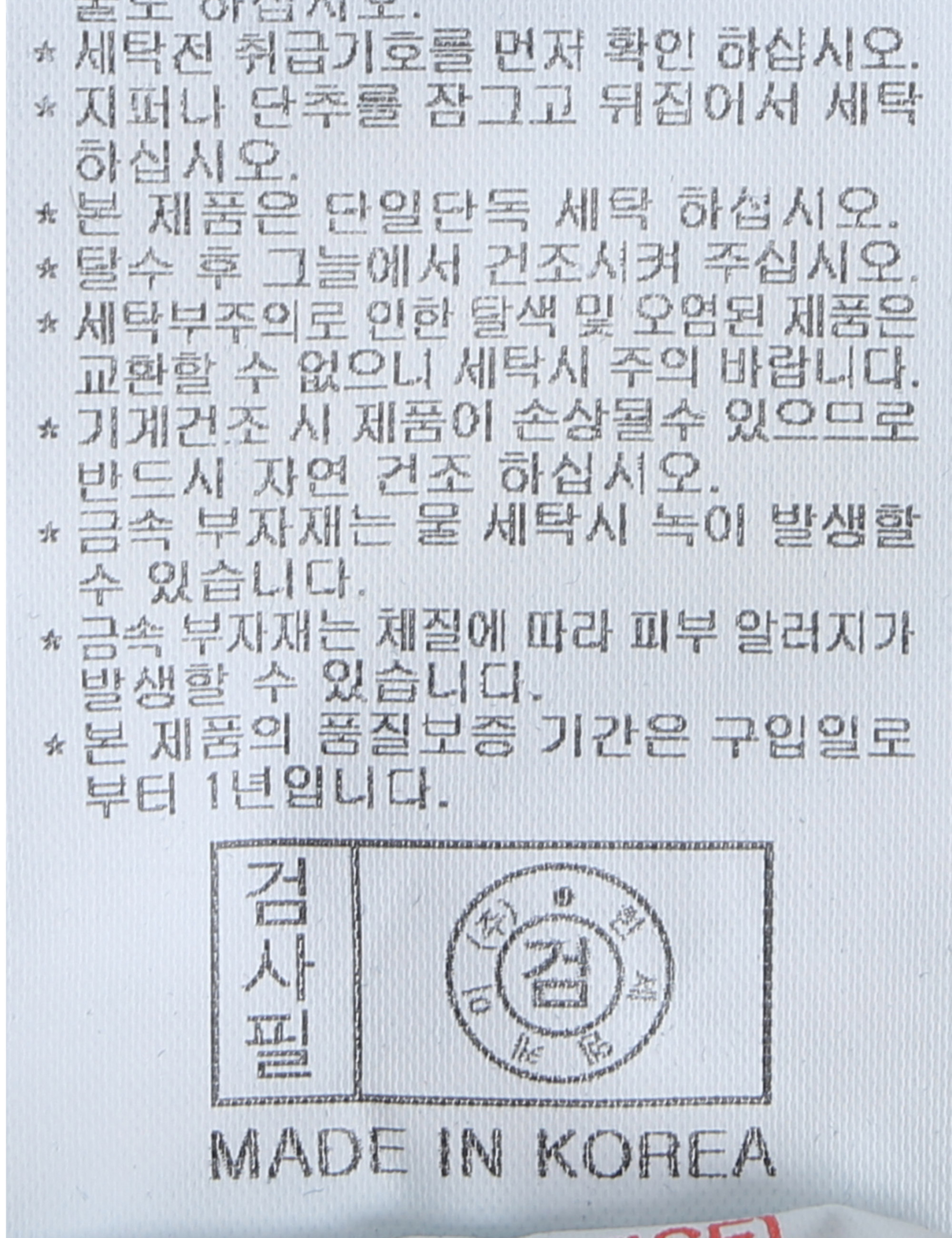 | 세탁방법 및 취급시 주의사항 | 중성세제로 단 시간내에 세탁하십시오.(케어라벨참고) |
