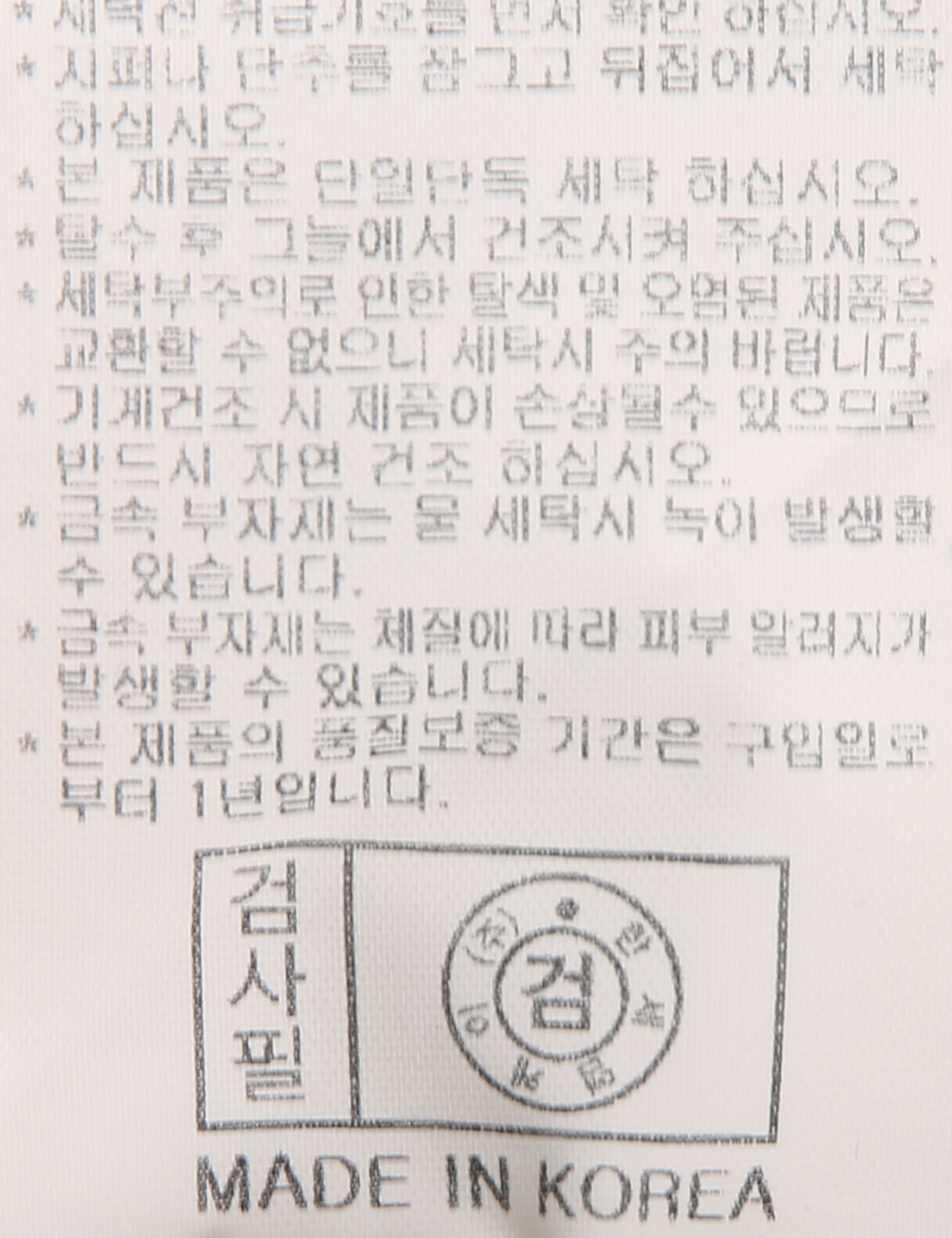 세탁방법 및 취급시 주의사항 중성세제로 단 시간내에 세탁하십시오.(케어라벨참고)