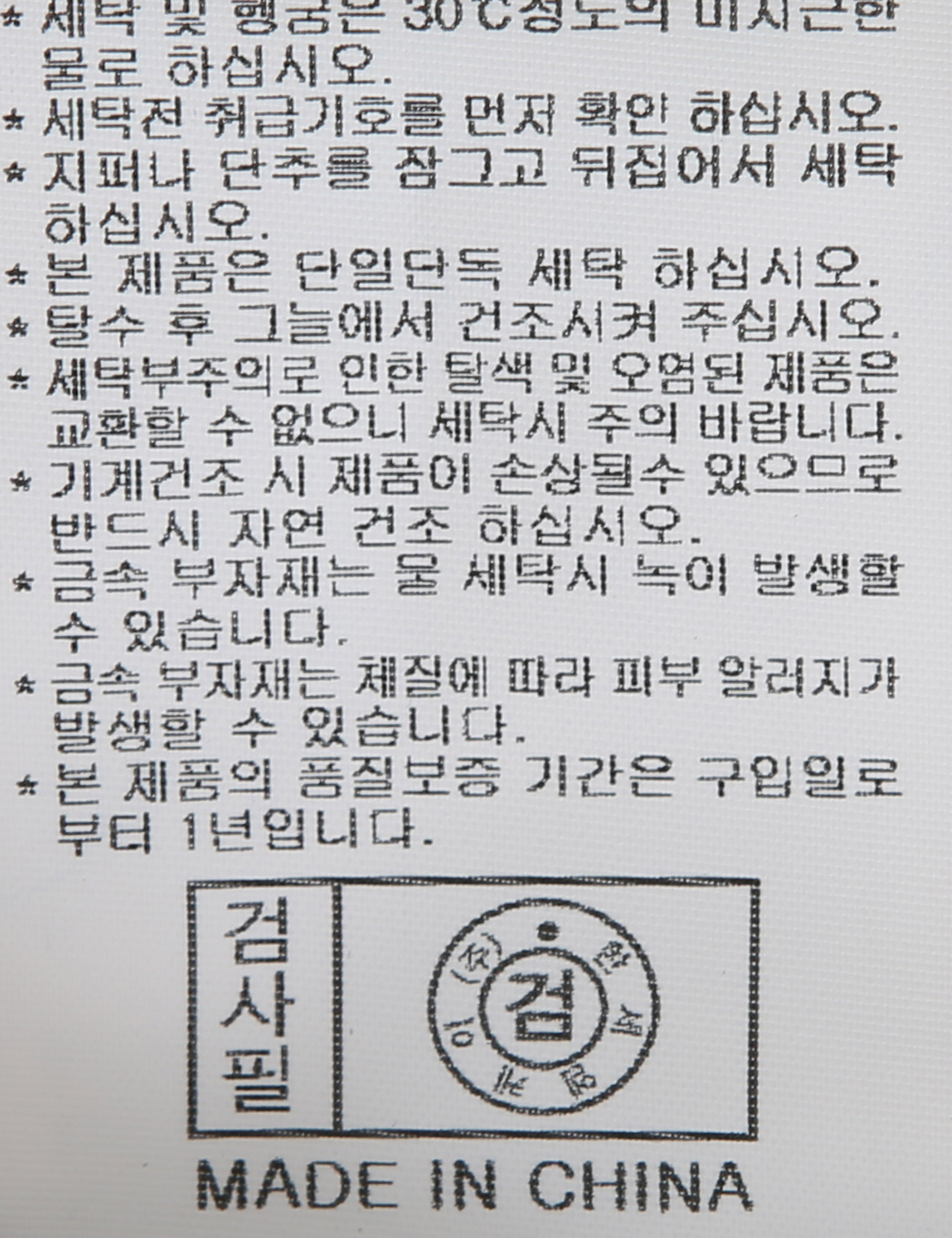 | 세탁방법 및 취급시 주의사항 | 중성세제로 단 시간내에 세탁하십시오.(케어라벨참고) |