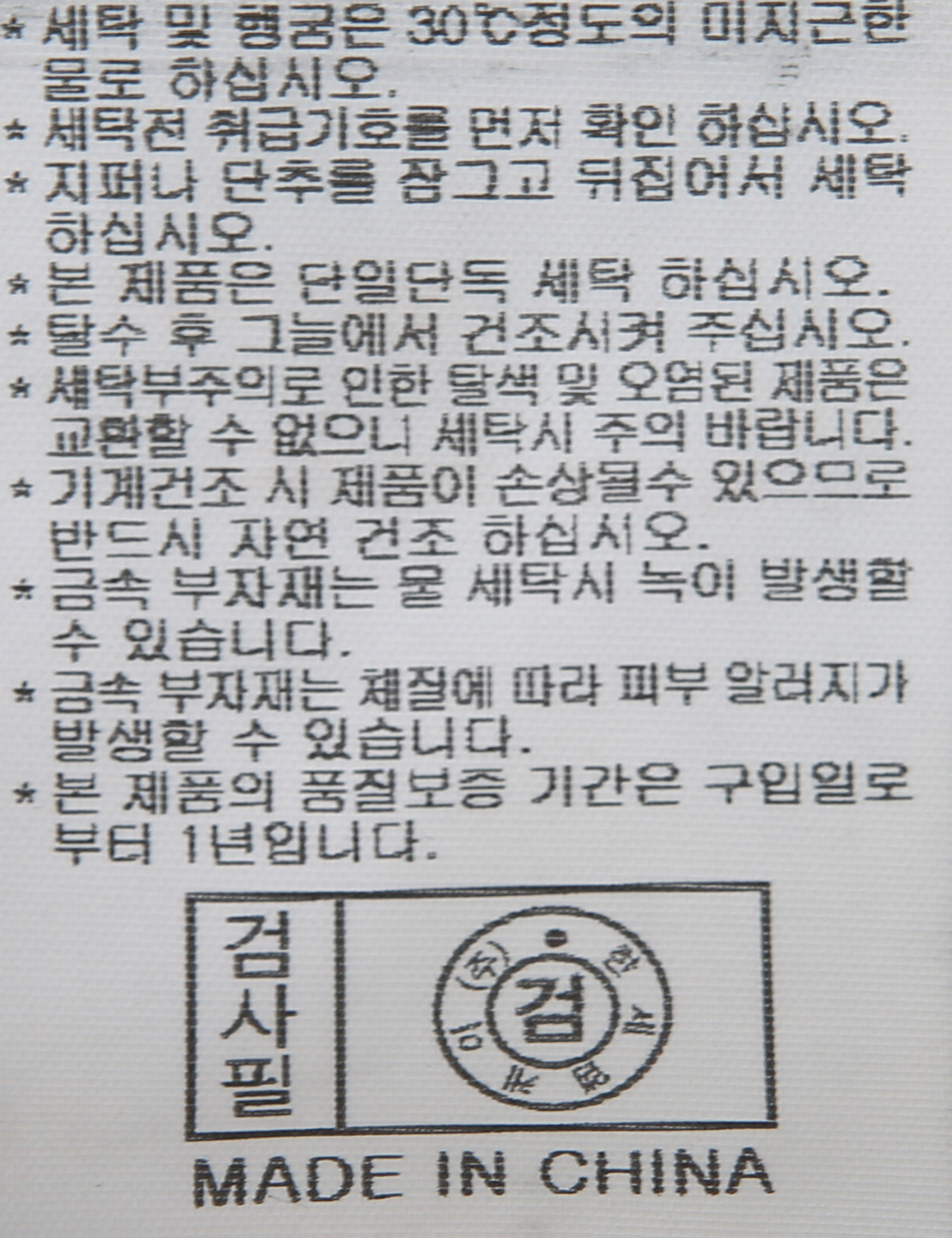 | 세탁방법 및 취급시 주의사항 | 중성세제로 단 시간내에 세탁하십시오.(케어라벨참고) |