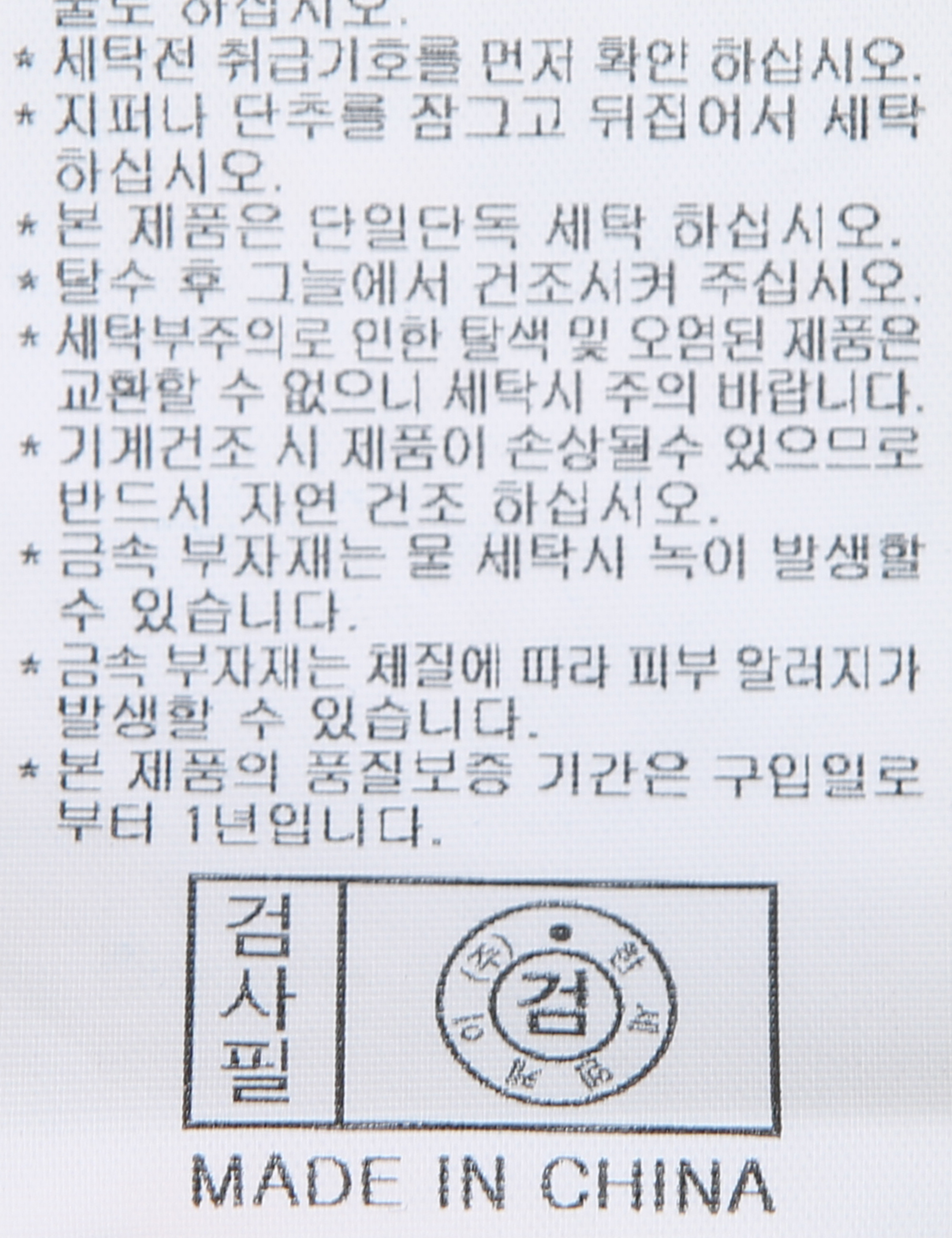| 세탁방법 및 취급시 주의사항 | 중성세제로 단 시간내에 세탁하십시오.(케어라벨참고) |