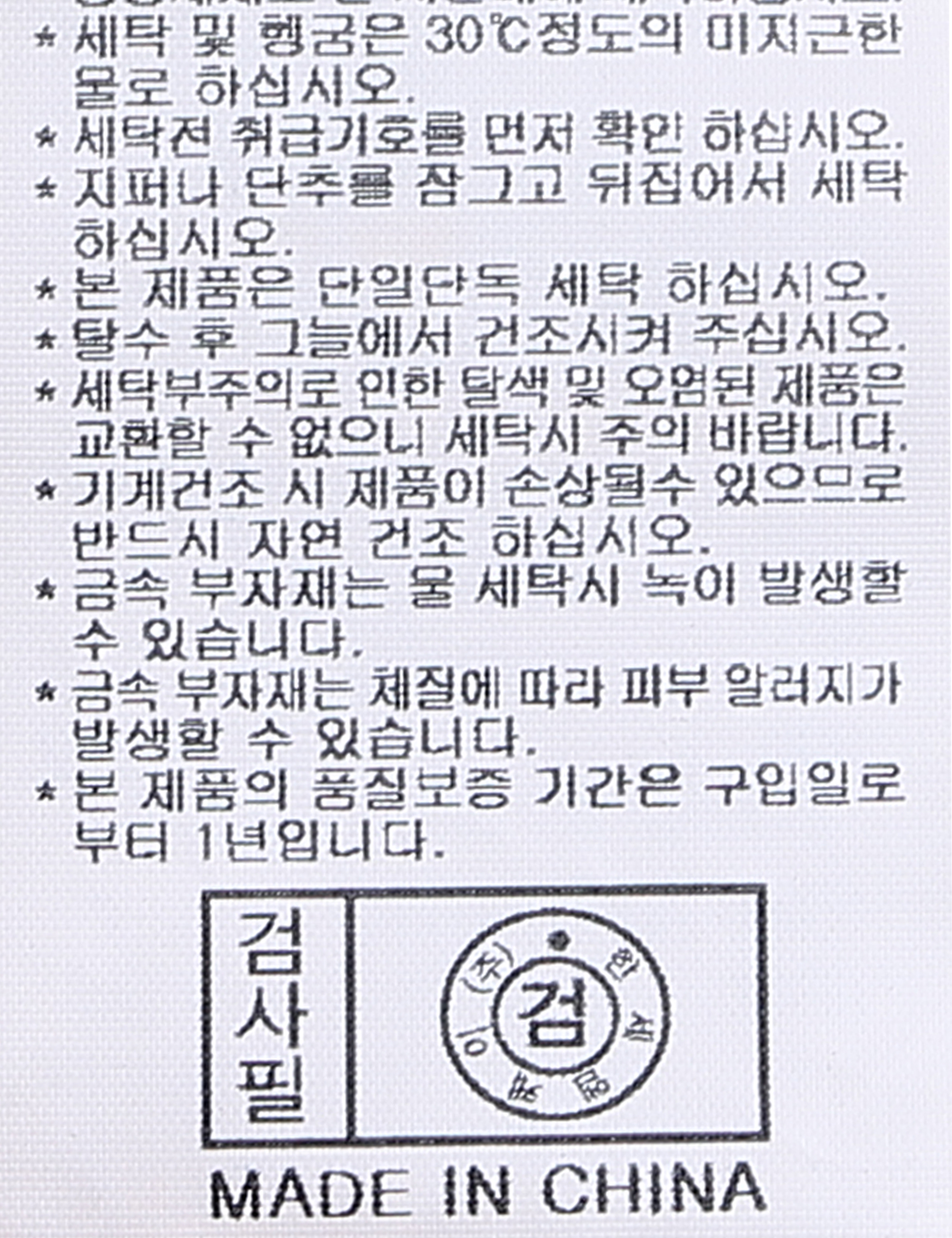 | 세탁방법 및 취급시 주의사항 | 중성세제로 단 시간내에 세탁하십시오.(케어라벨참고) |