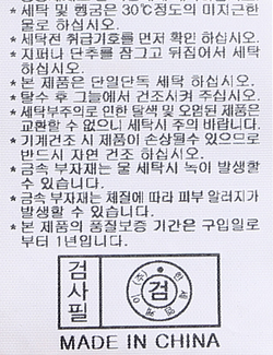 세탁방법 및 취급시 주의사항 중성세제로 단 시간내에 세탁하십시오.(케어라벨참고)