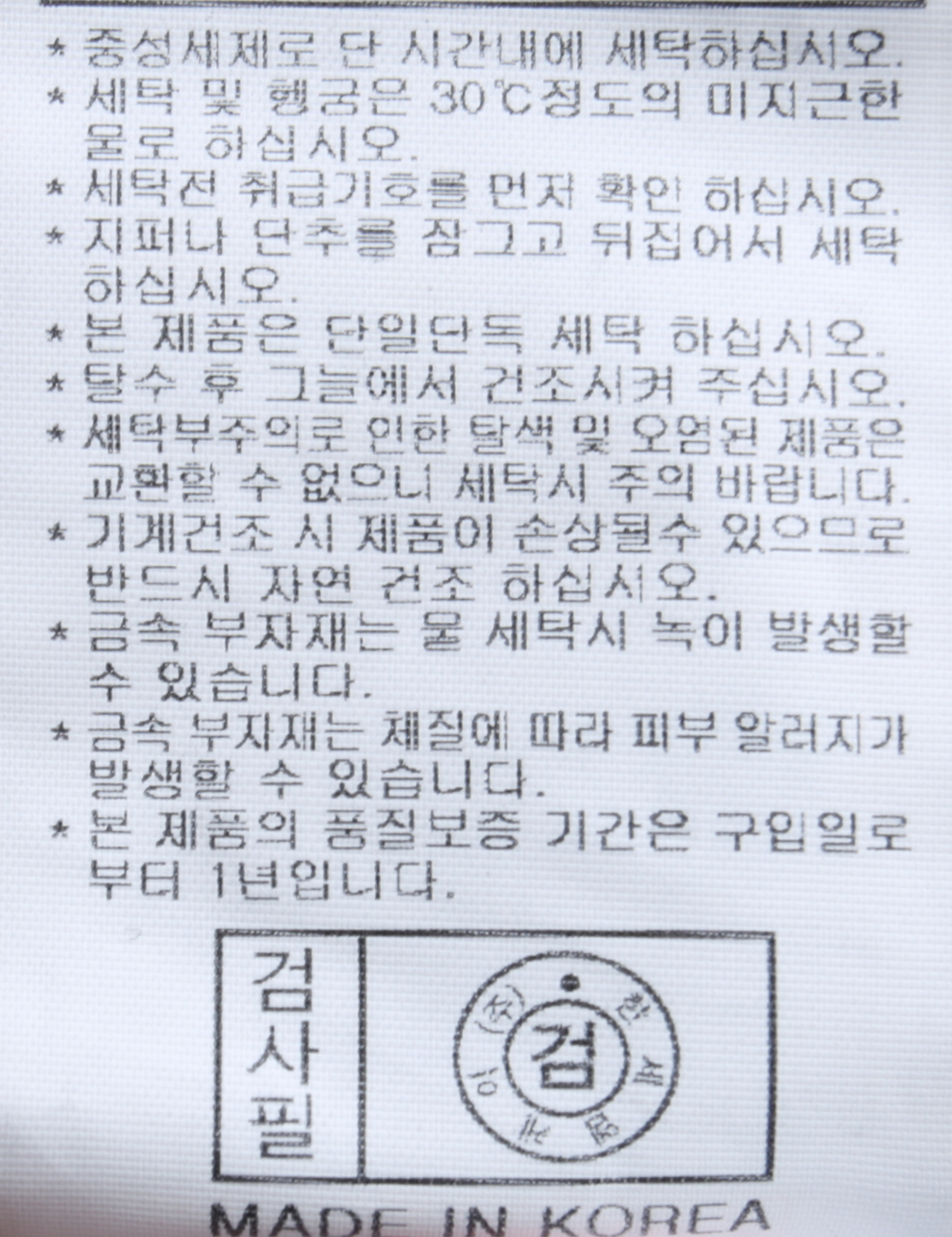 세탁방법 및 취급시 주의사항 중성세제로 단 시간내에 세탁하십시오.(케어라벨참고)