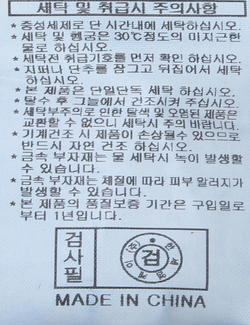 | 세탁방법 및 취급시 주의사항 | 중성세제로 단 시간내에 세탁하십시오.(케어라벨참고) |