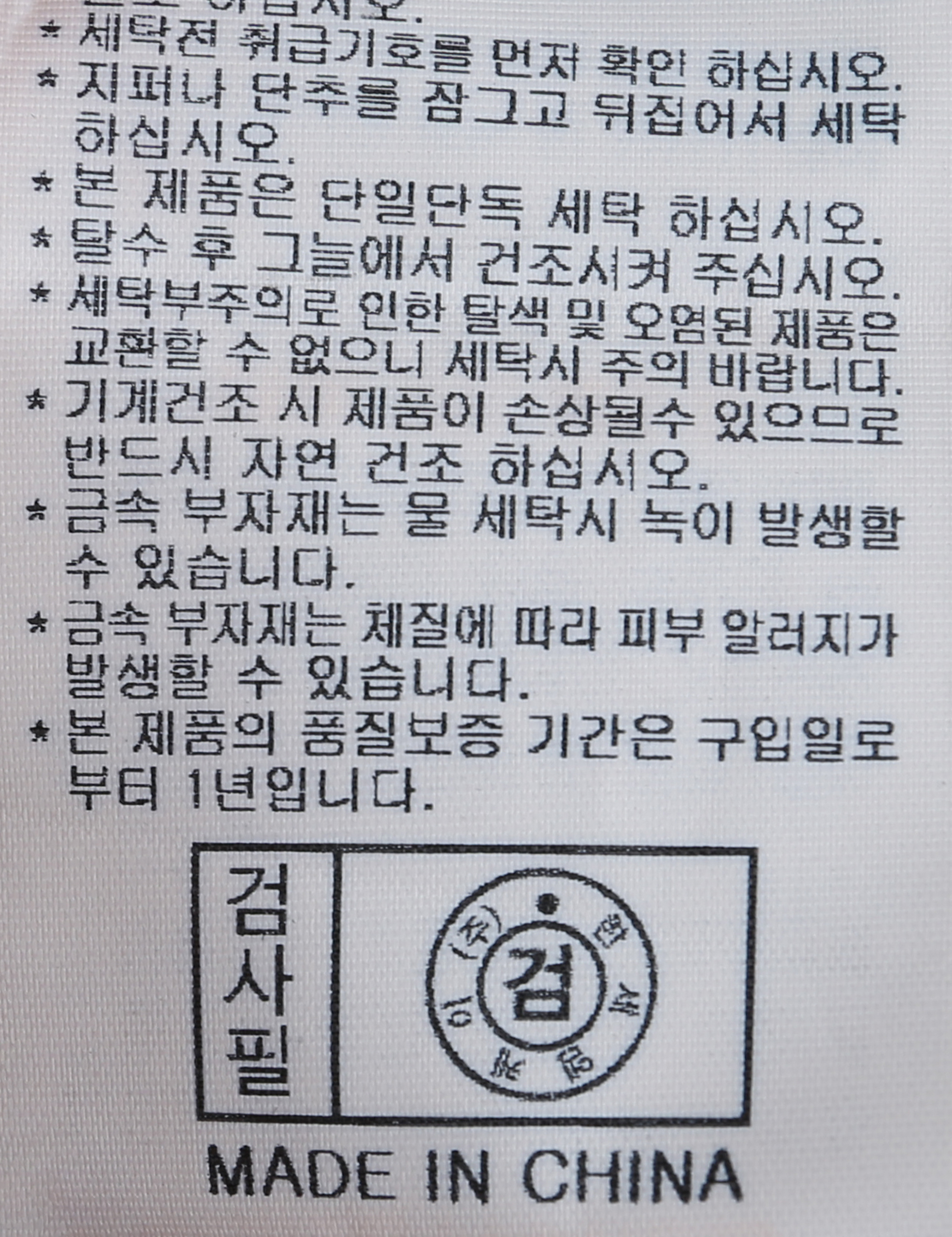 세탁방법 및 취급시 주의사항 중성세제로 단 시간내에 세탁하십시오.(케어라벨참고)