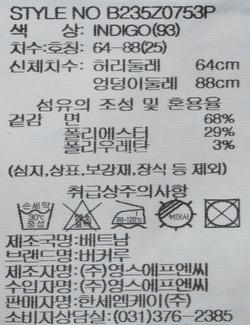 | 상품명 | 여성 부츠컷 데님팬츠 (B235Z0753P) |