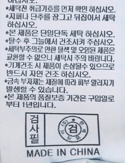 | 세탁방법 및 취급시 주의사항 | 중성세제로 단 시간내에 세탁하십시오.(케어라벨참고) |