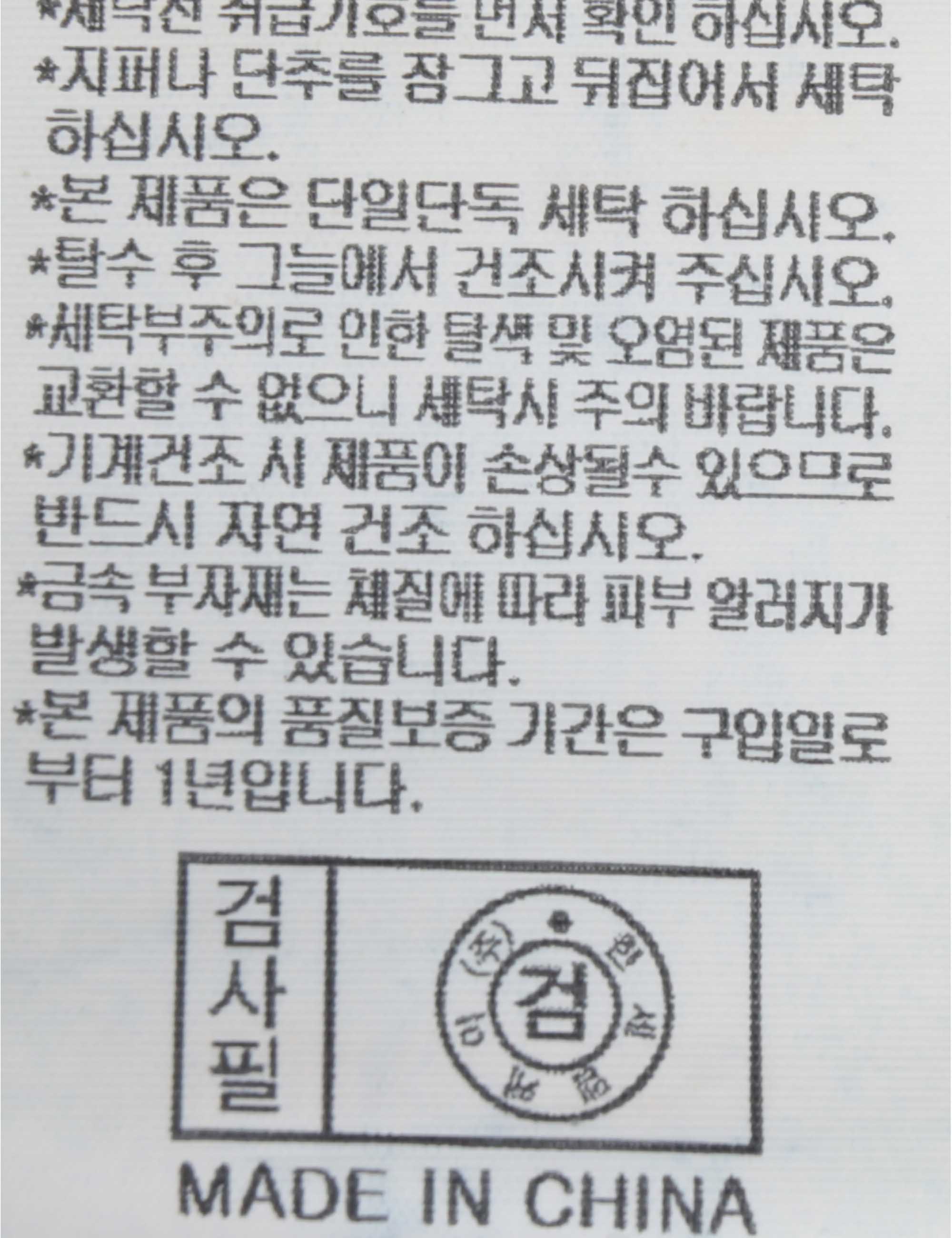 | 세탁방법 및 취급시 주의사항 | 중성세제로 단 시간내에 세탁하십시오.(케어라벨참고) |