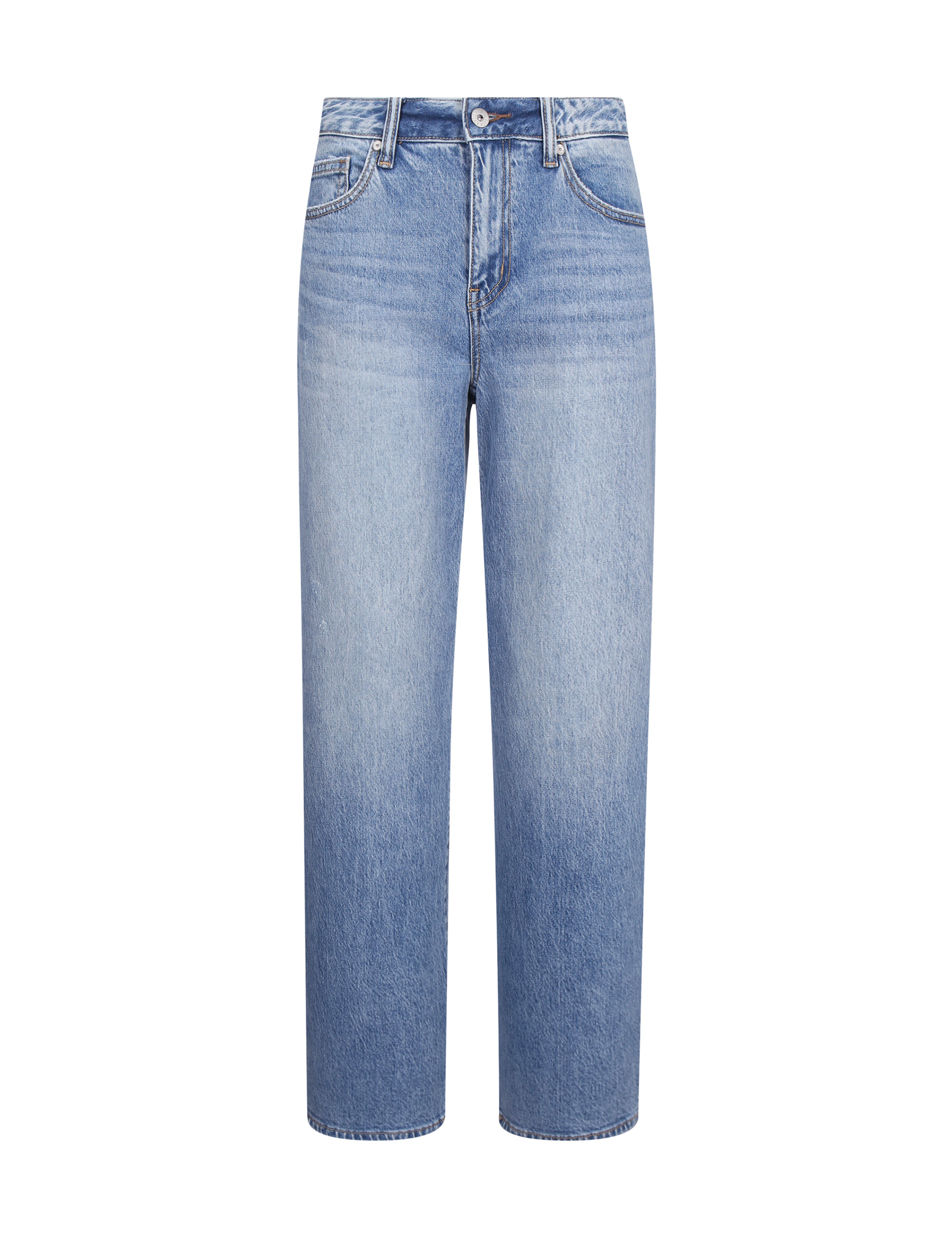로우라이즈 핏감의 힙부터 밑단까지 자연스럽게 넓어지는 루즈 와이드 데님 팬츠로