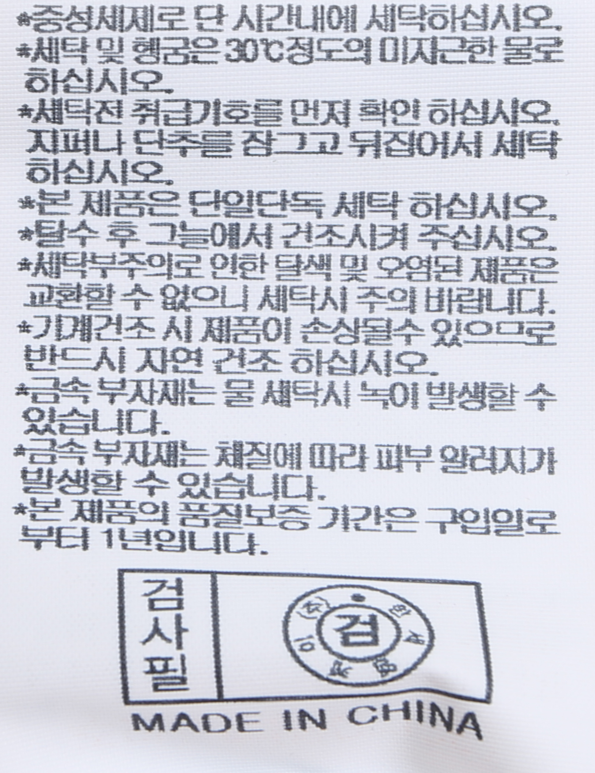 | 세탁방법 및 취급시 주의사항 | 본 제품은 손세탁 하십시오.(케어라벨참고) |
