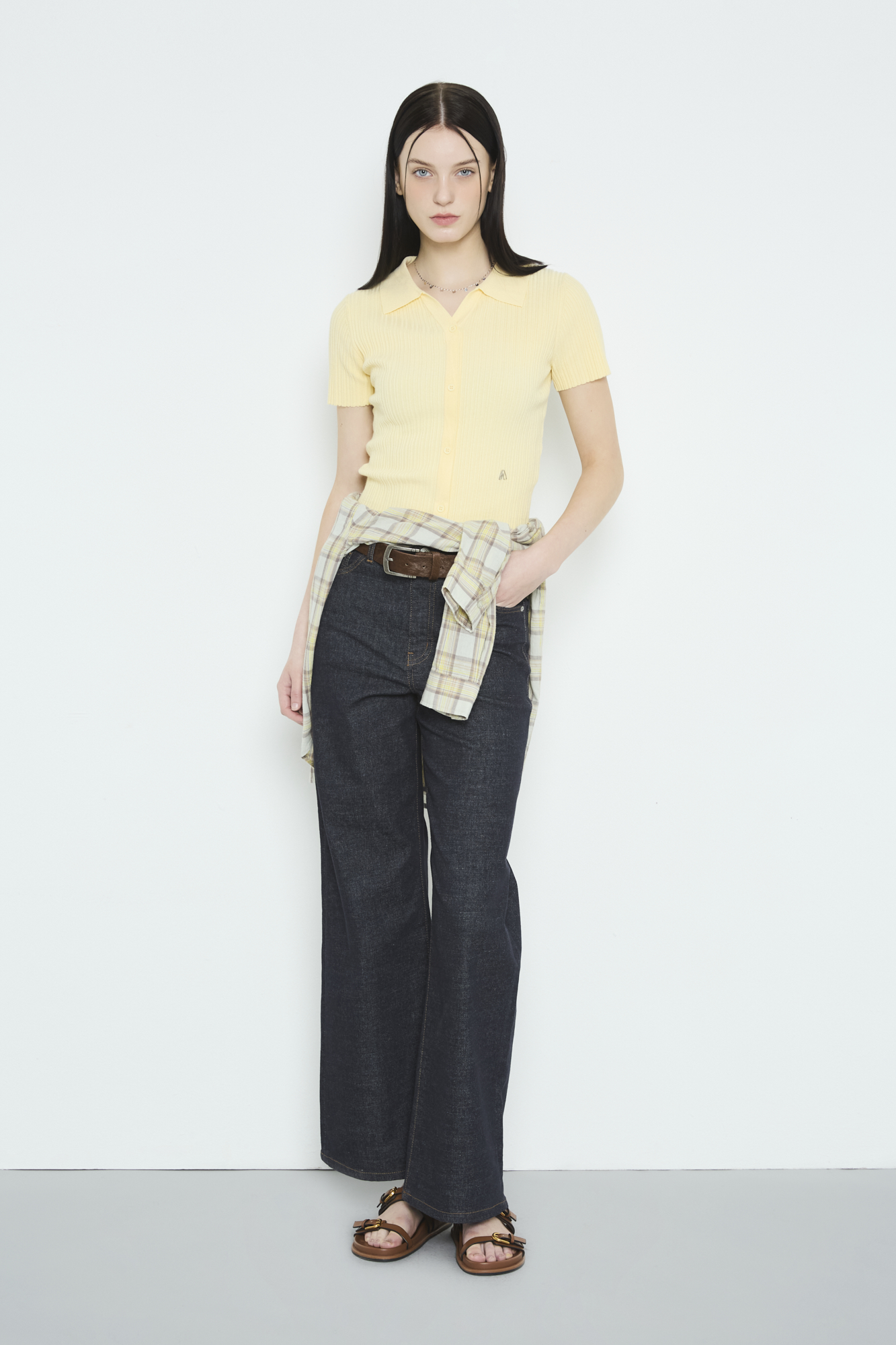 * 허리부터 힙까지 슬림하고 핏하게 잡아주며 힙부터 밑단까지 자연스럽게 넓어지는 와이드 데님 팬츠