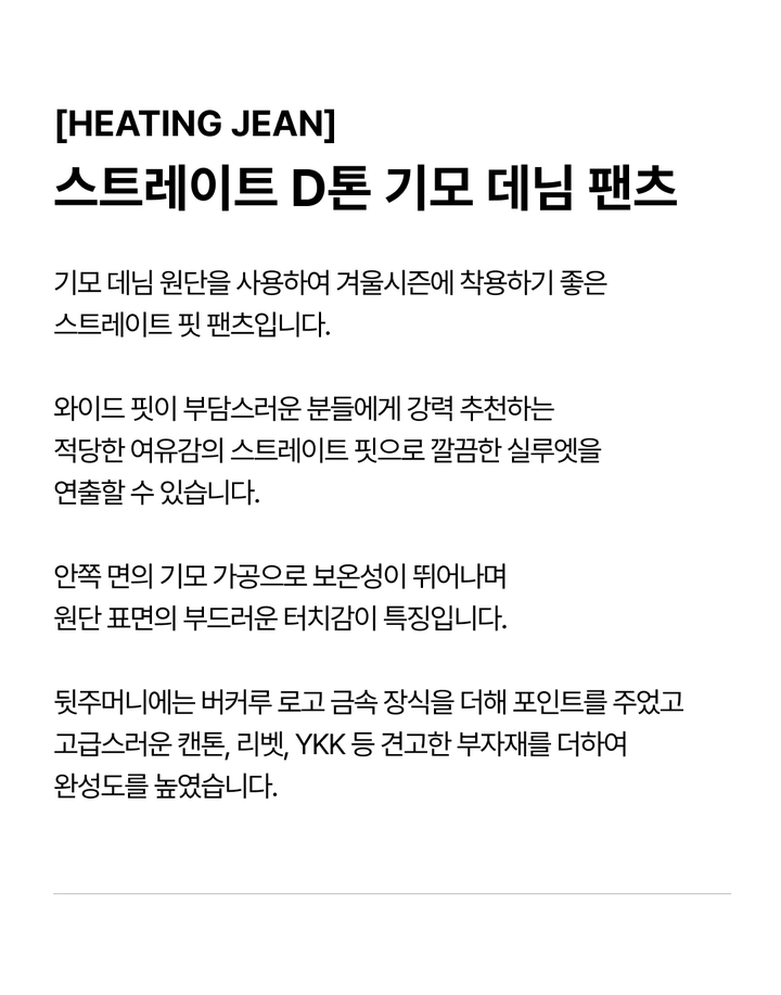 상품명 [HEATING JEAN] 스트레이트 D톤 기모 데님 팬츠(B254DP103P)