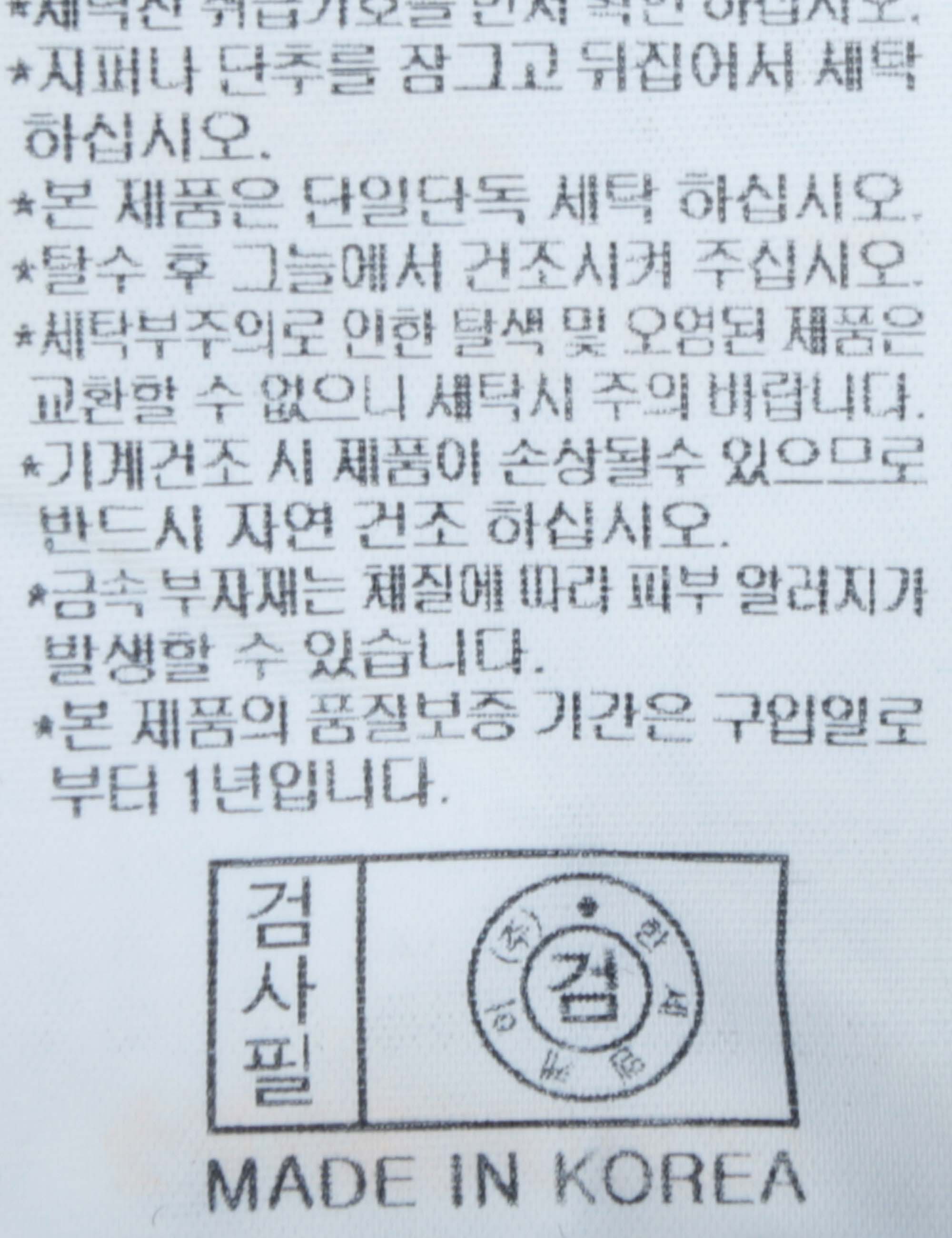 | 세탁방법 및 취급시 주의사항 | 중성세제로 단 시간내에 세탁하십시오.(케어라벨참고) |