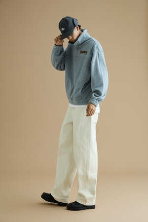 *하이라이즈 핏감의 허리와 힙은 슬림하게 잡아주다가 허벅부터 밑단까지 와일드하면서 곡선 라인으로 흐르면서 넓어지는 핏으로 발등을 덮는 롱한 기장감의 와이드 데님 팬츠로 데일리룩으로 스타일링 하기 유용한 데님 와이드 팬츠.